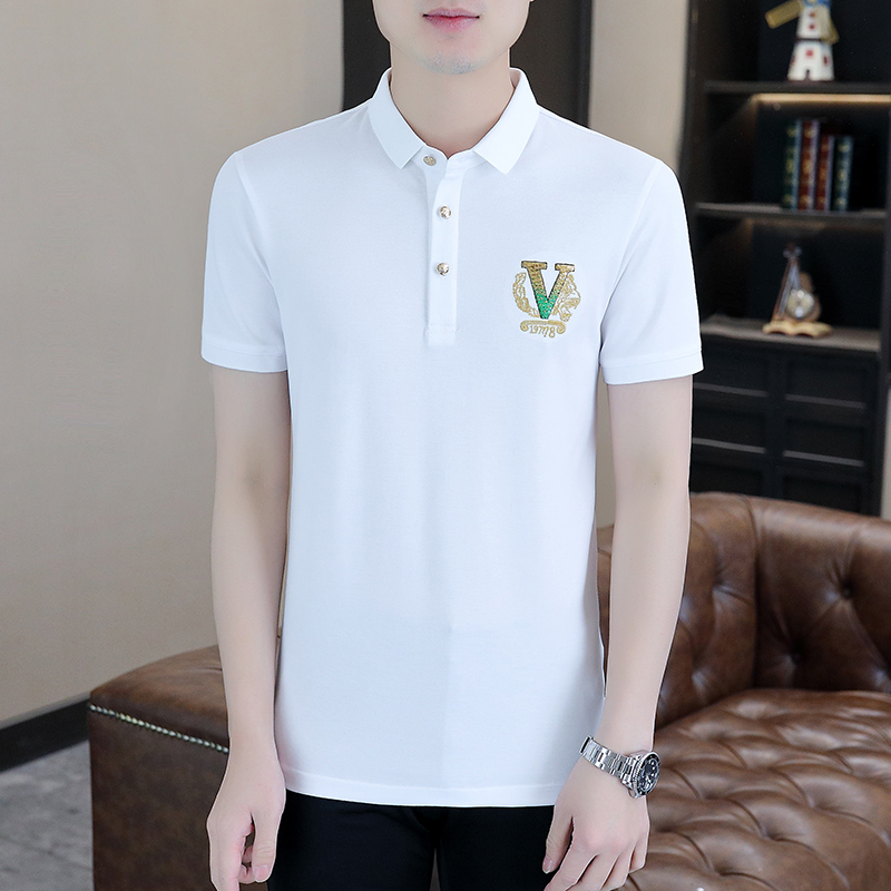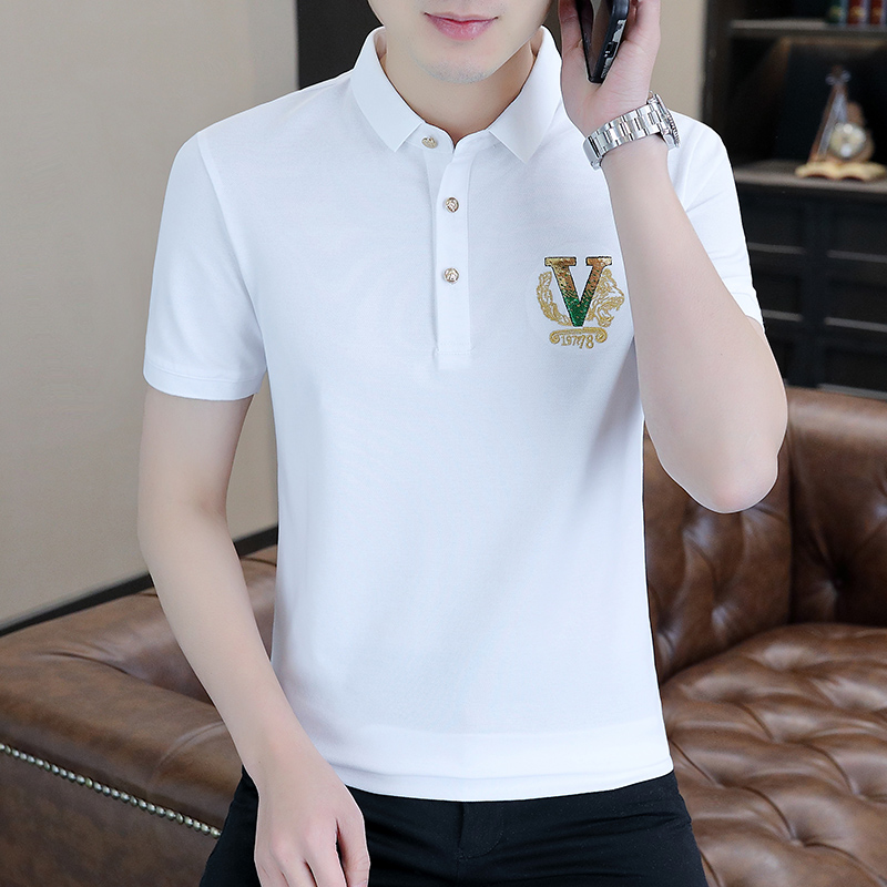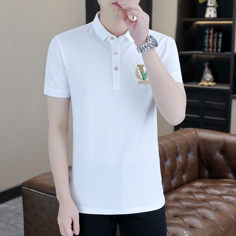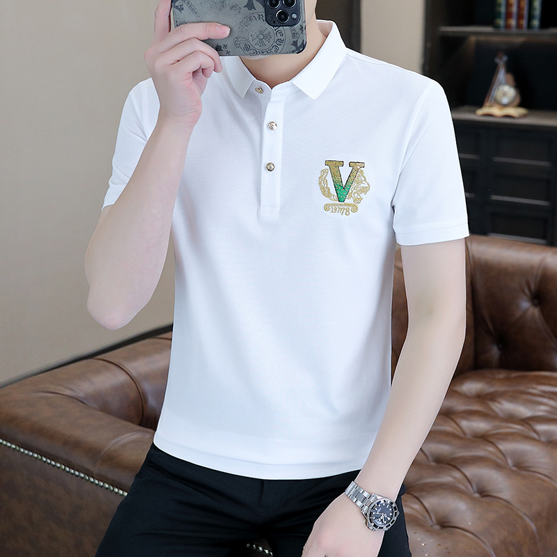 新款时尚潮流简约气质百搭休闲短袖2203-半V M 白色