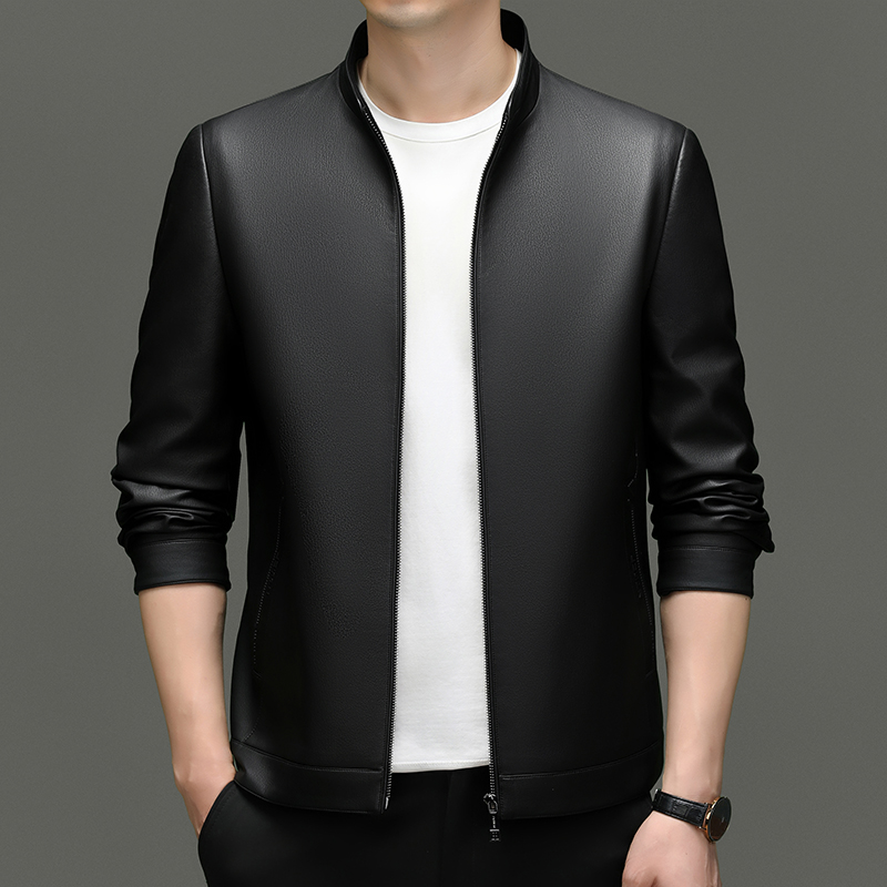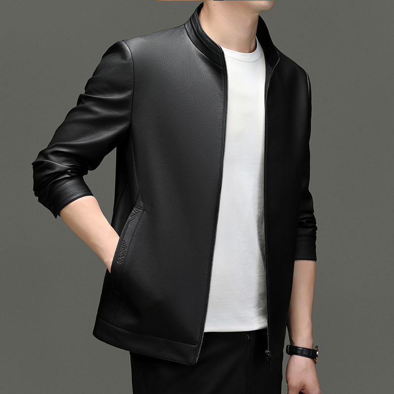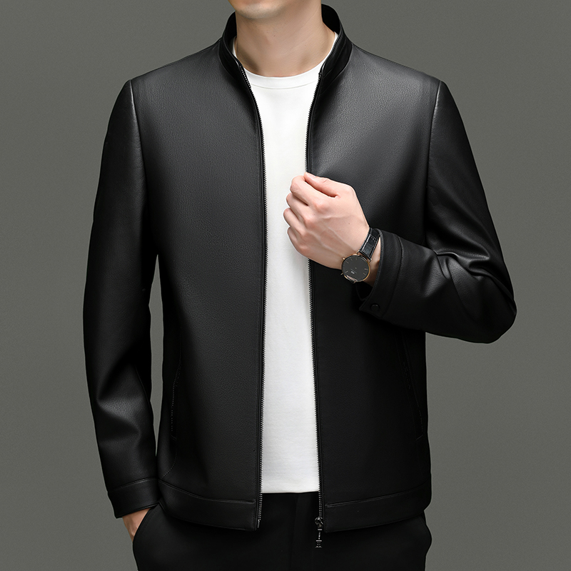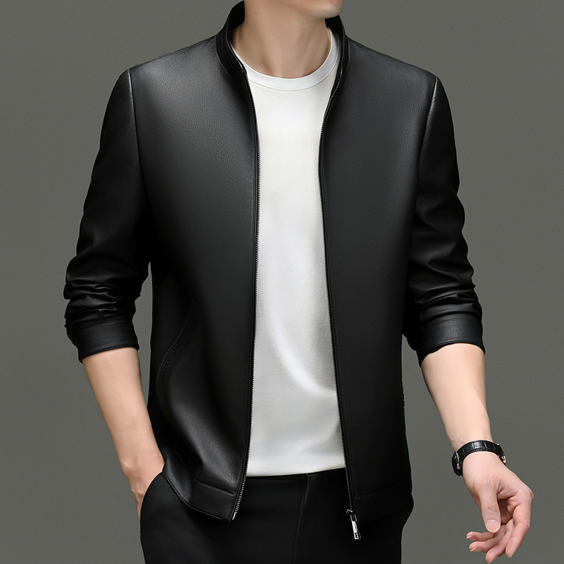 2023秋冬薄款外套夹克商务休闲时尚中年潮流百搭真皮皮衣男装--2339摩卡路 M/170 黑色(薄款)