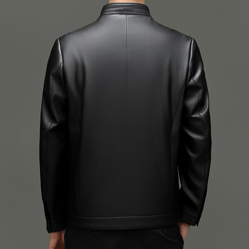 2332商务皮夹克翻领中年爸爸男装上衣-挂拍