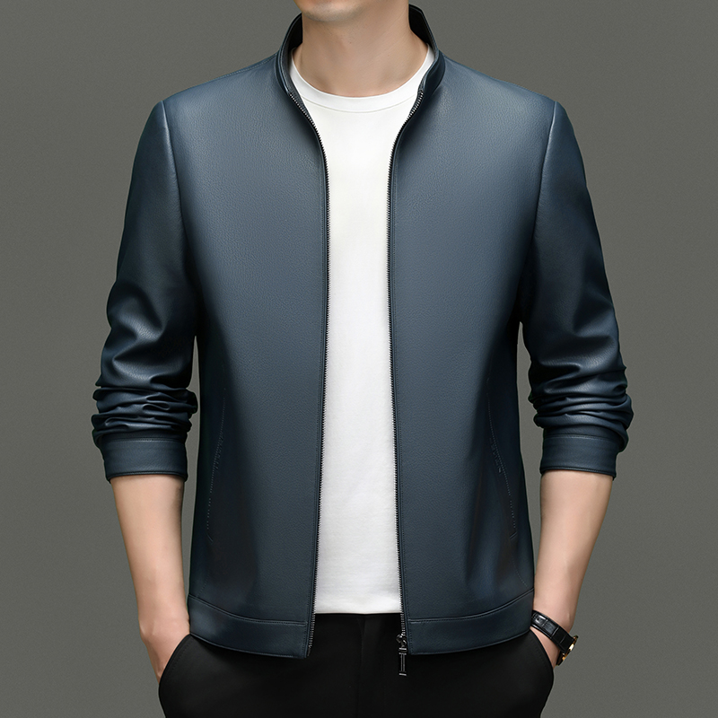 2332商务皮夹克翻领中年爸爸男装上衣-挂拍