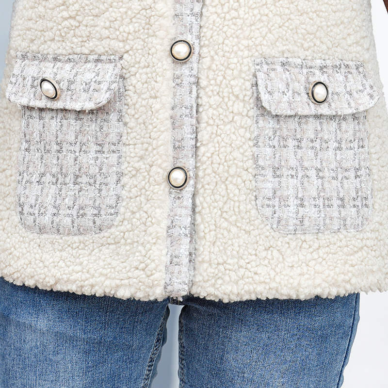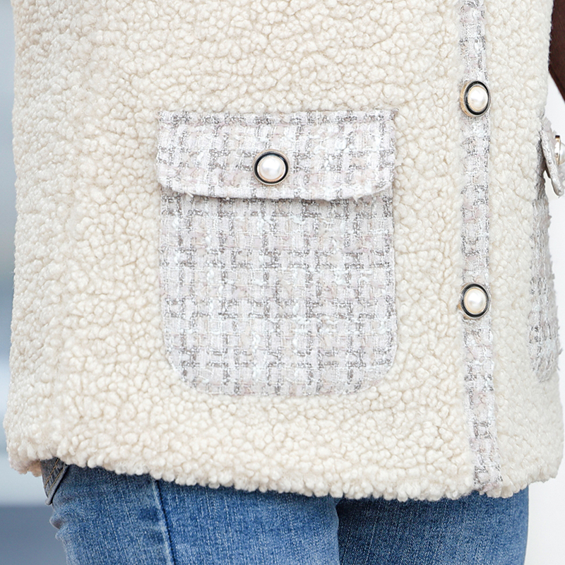 冬季中老年女士毛呢大衣加厚保暖仿羊羔绒领口设计外套 XL 红色