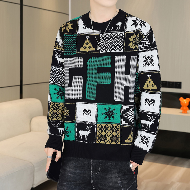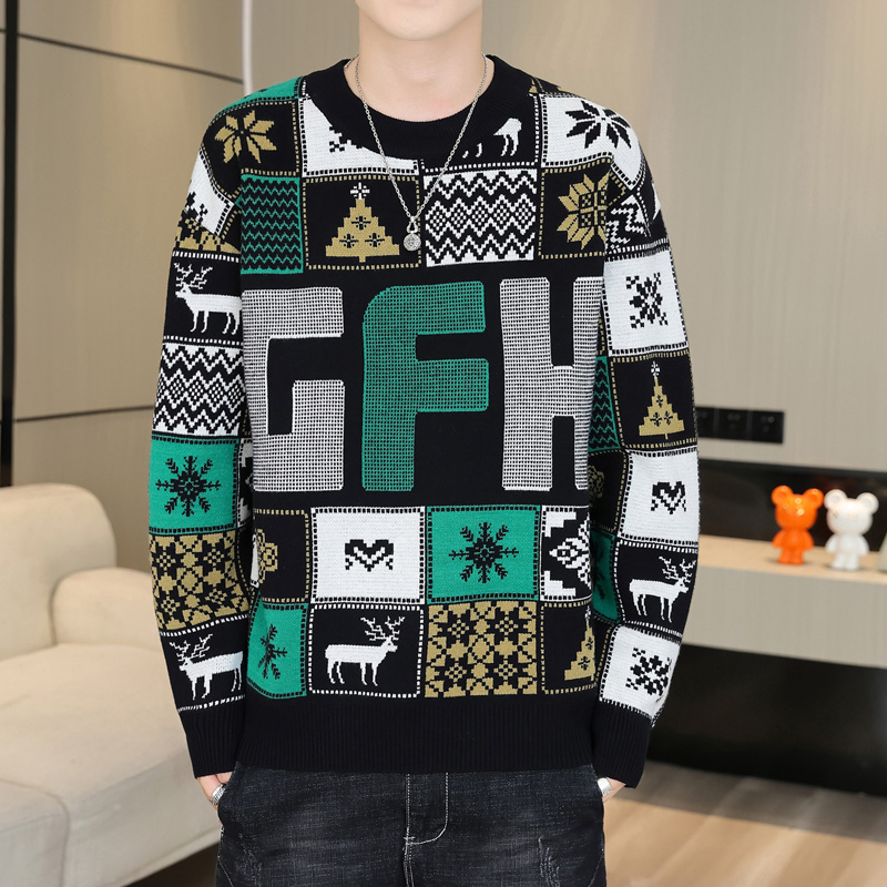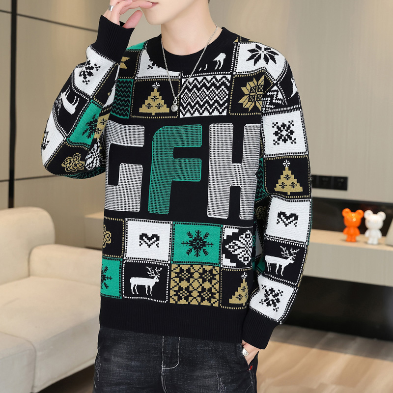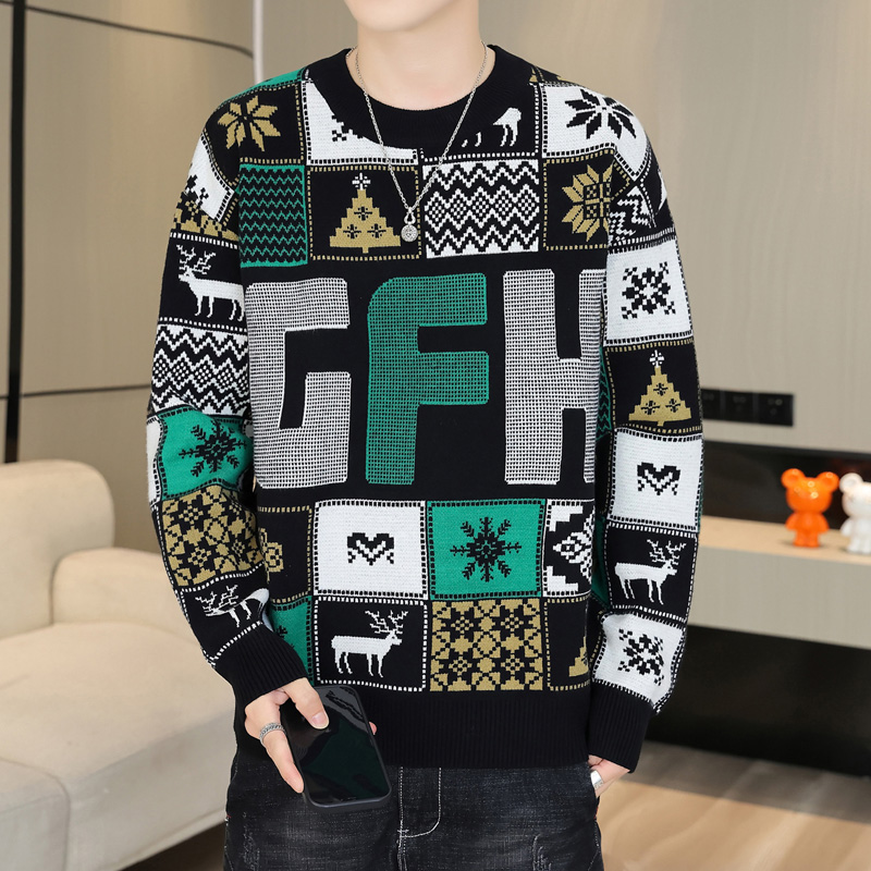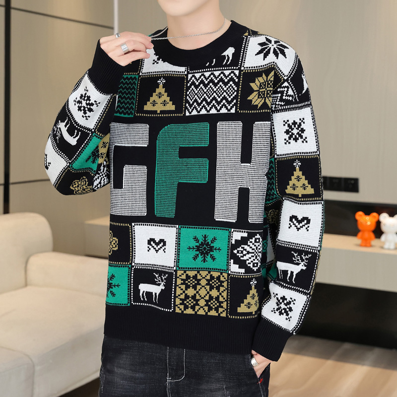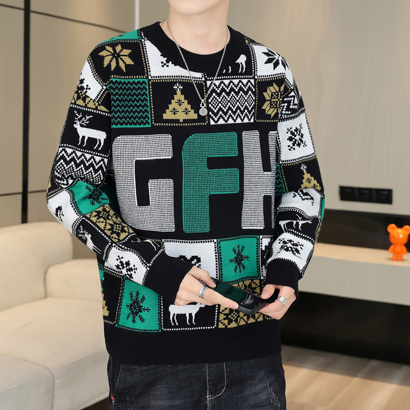 青少年宽松阔版巴卡绒抗起球毛衣模特图2630 M 黑色