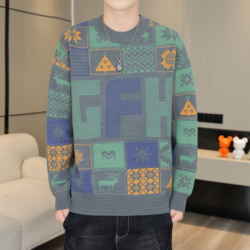 秋冬新款天鹅绒加绒毛衣时尚男神款 A19 M 深灰色