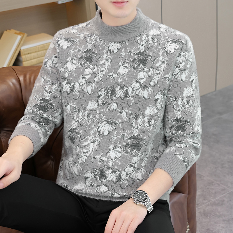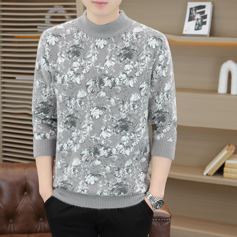 新款高品质水晶貂时尚青少年毛衣满身花款阿杰图36016 M 灰色