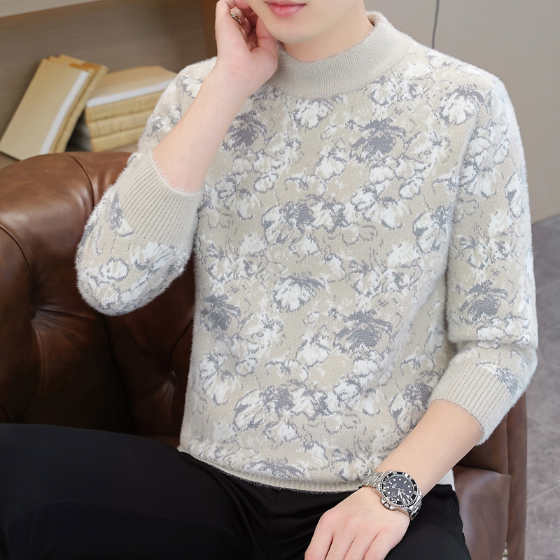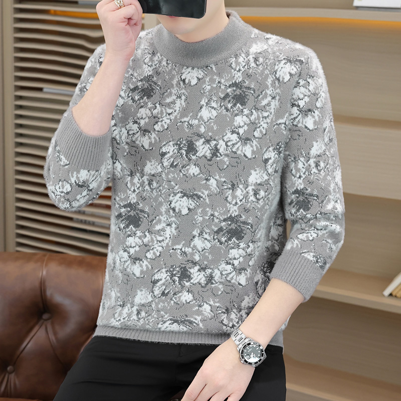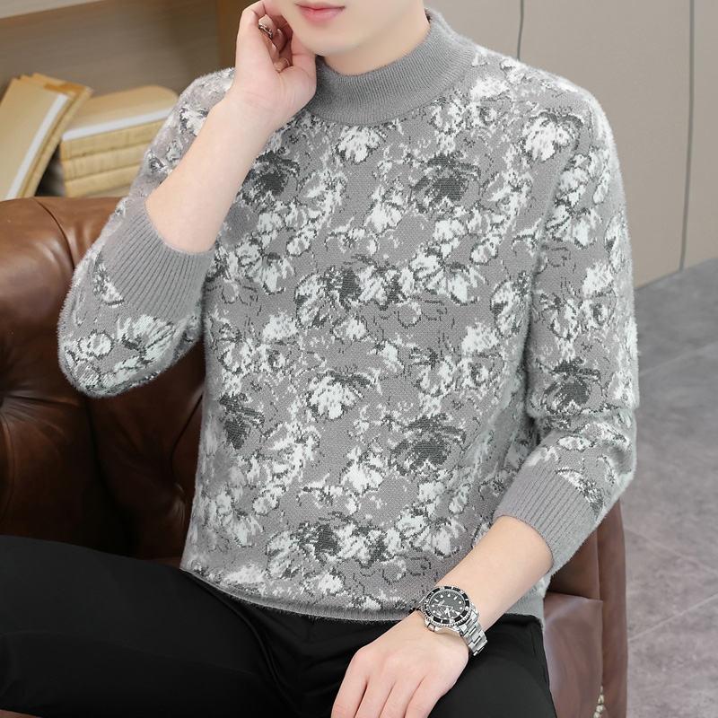 秋冬新款天鹅绒加绒毛衣时尚男神款 A19 M 深灰色