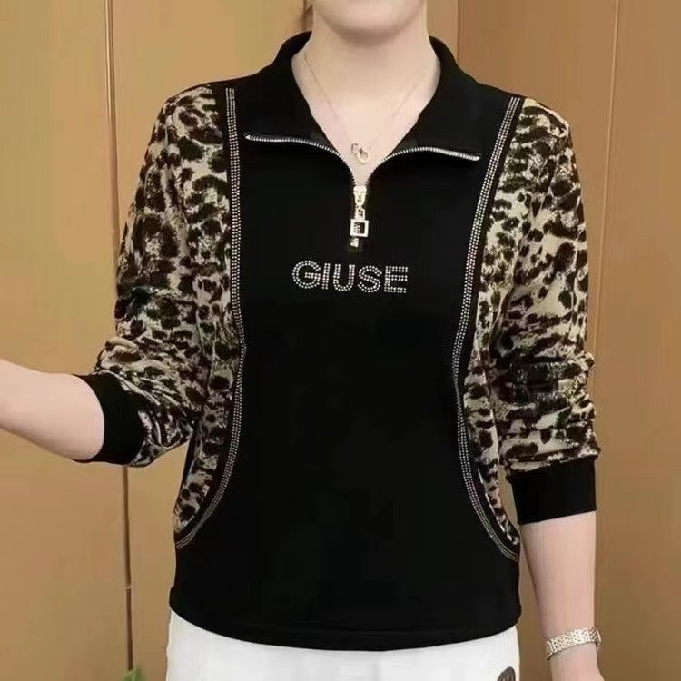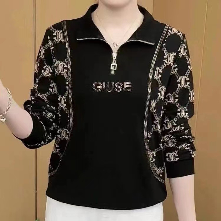 中老年妈妈装优雅时尚拼接上衣-90689拉链拼接上衣 2XL 几何拼接