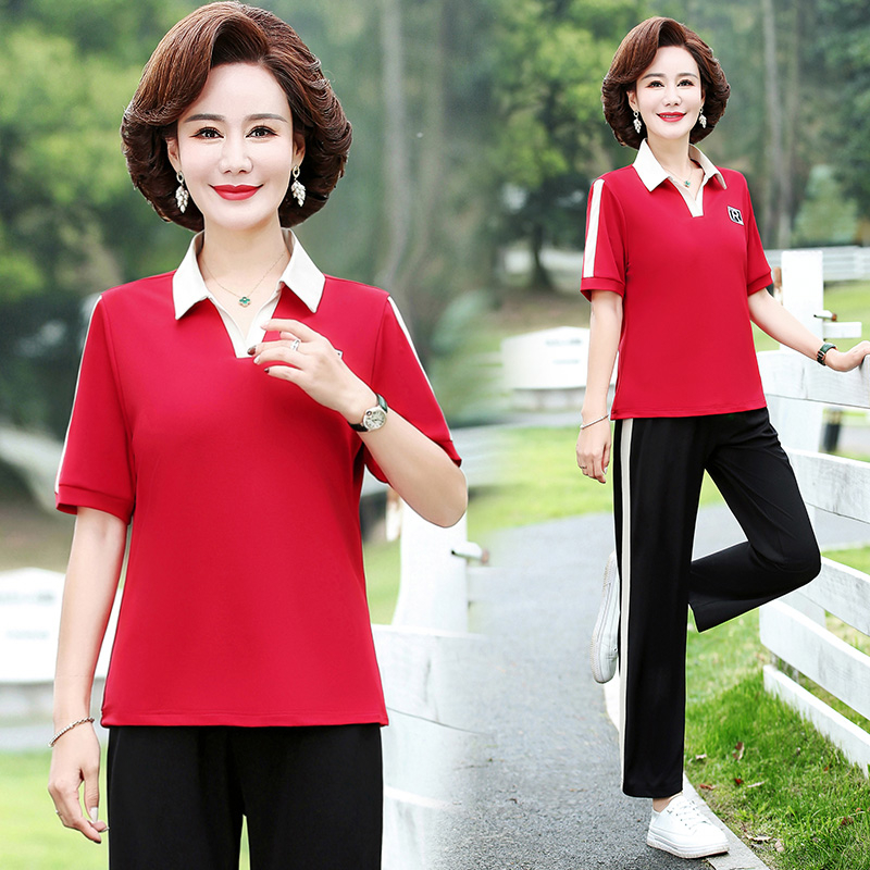中老年妈妈装时尚印花T恤-2308彩色POLO领小兔 XL 桔红色