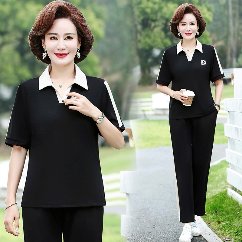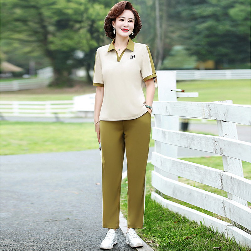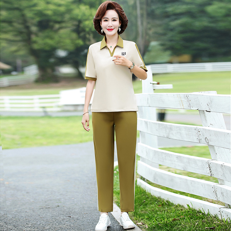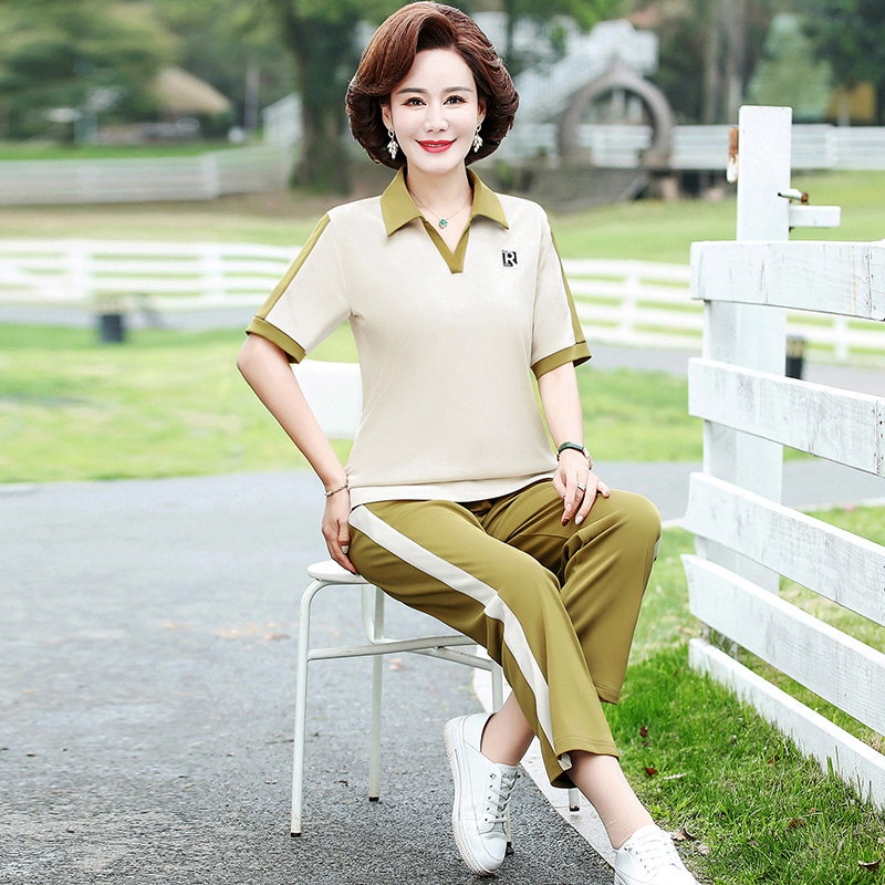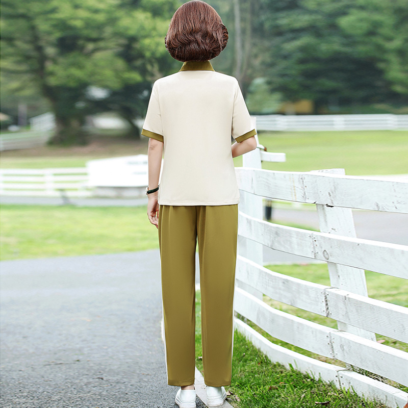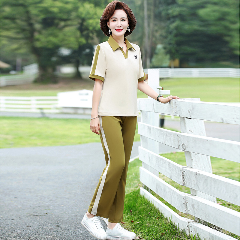 中老年妈妈装时尚百搭舒适显瘦款套装-2310R标套装 XL 秋香绿