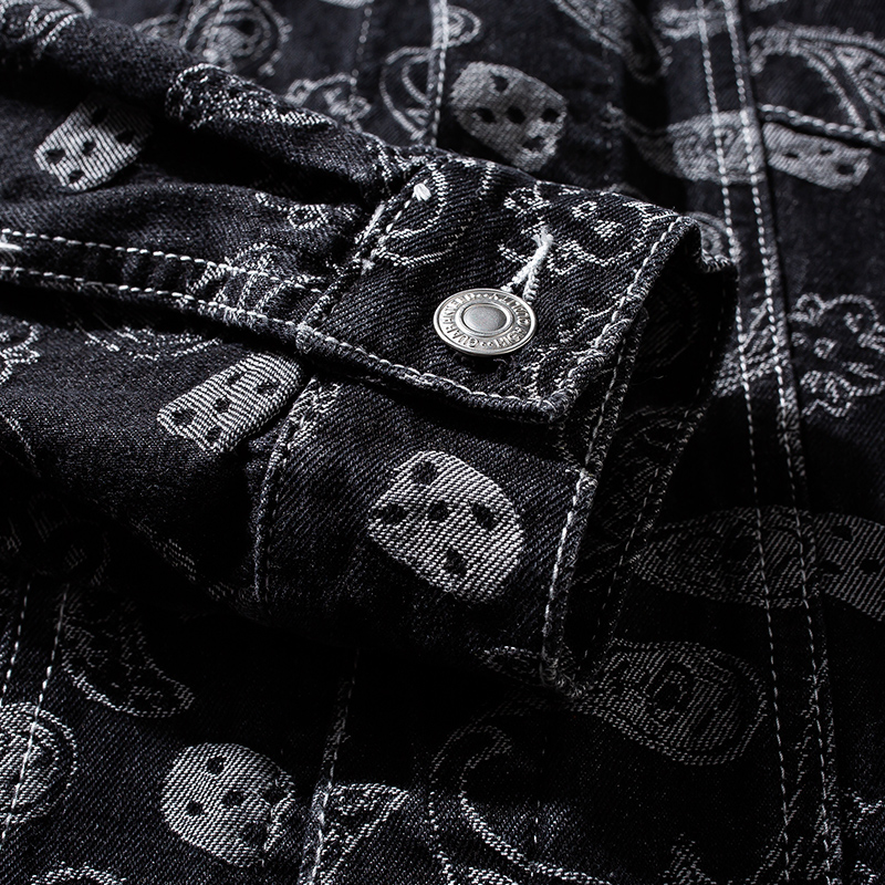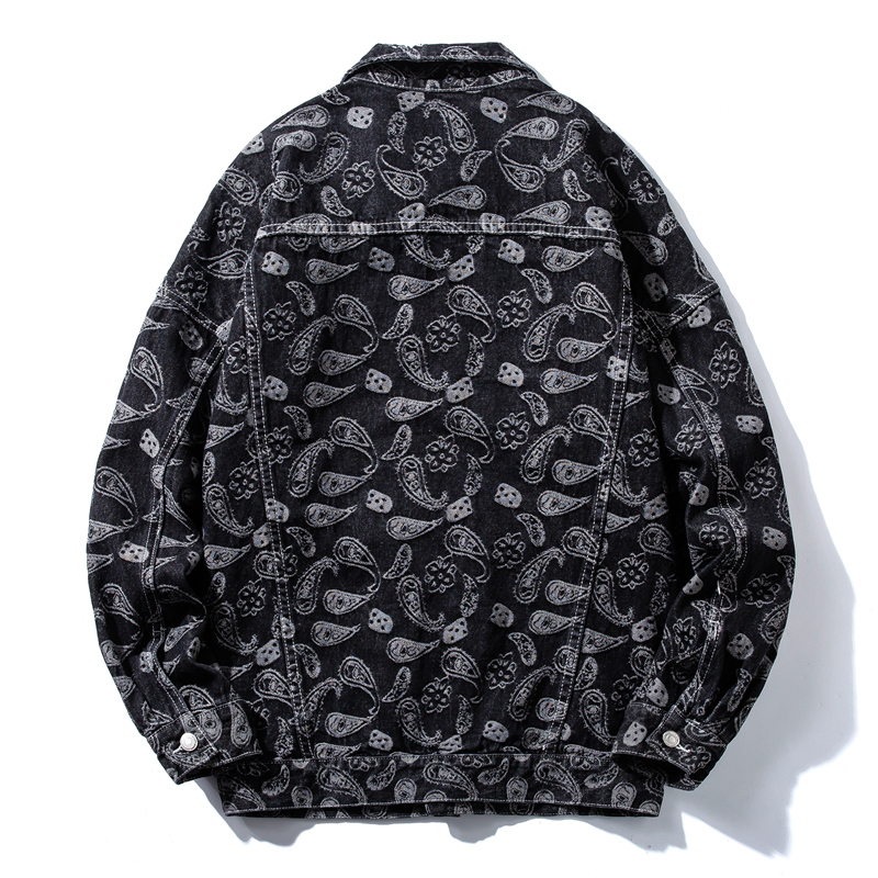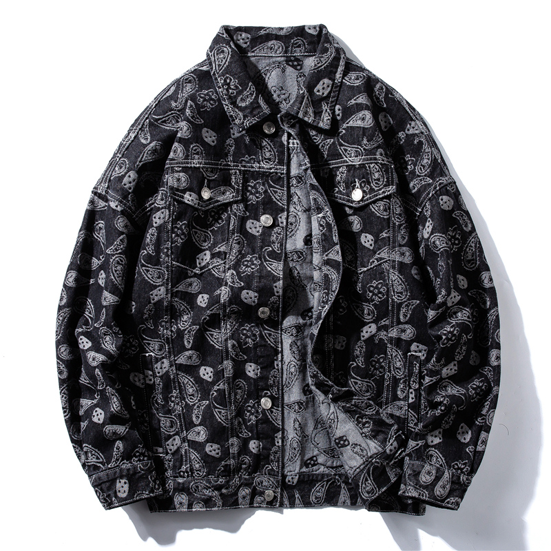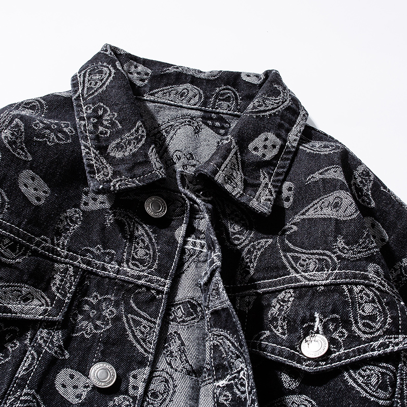 NJK1799青少年秋季新款腰花牛仔落肩袖休闲宽松外套-水泥墙挂拍图 L 黑色
