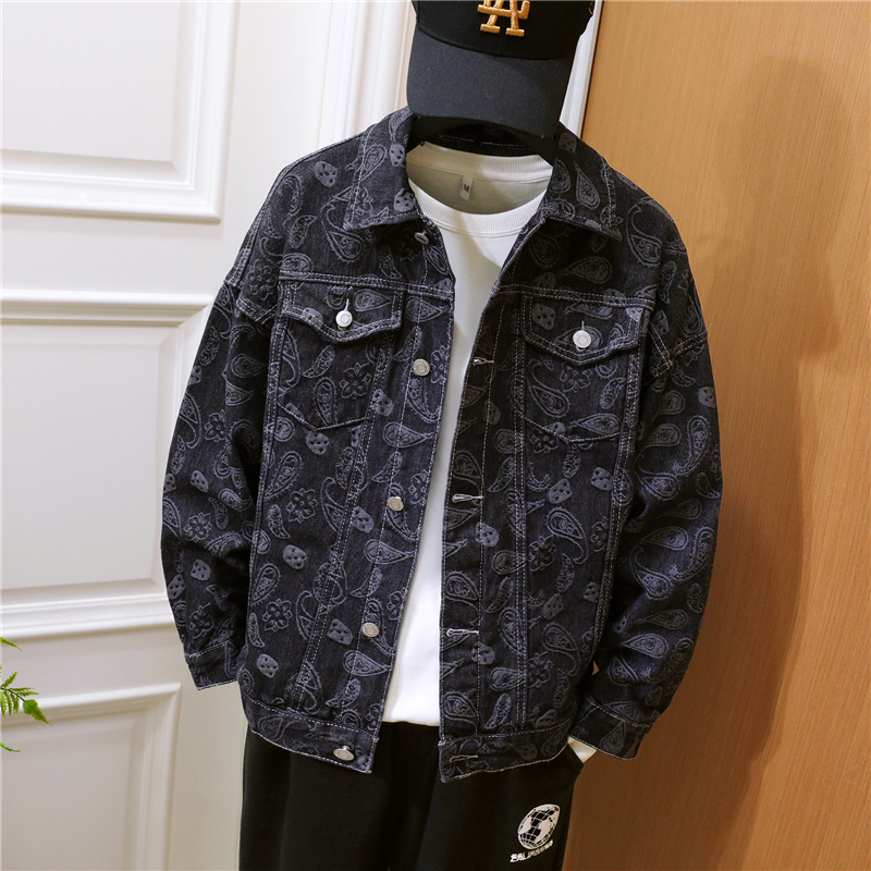 NJK1799青少年秋季新款腰花牛仔落肩袖休闲宽松外套-水泥墙挂拍图 L 黑色