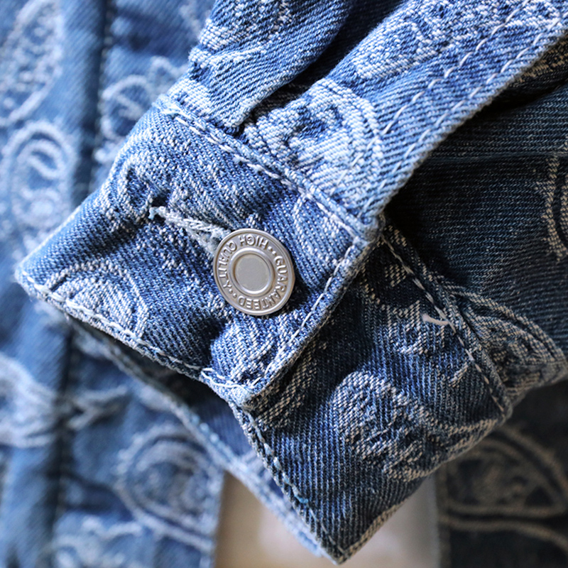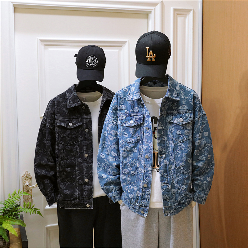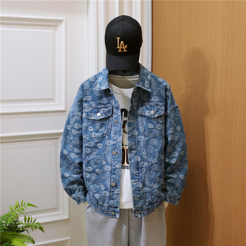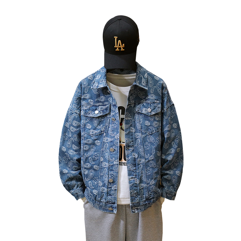 NJK1799青少年秋季新款腰花牛仔落肩袖休闲宽松外套-水泥墙挂拍图