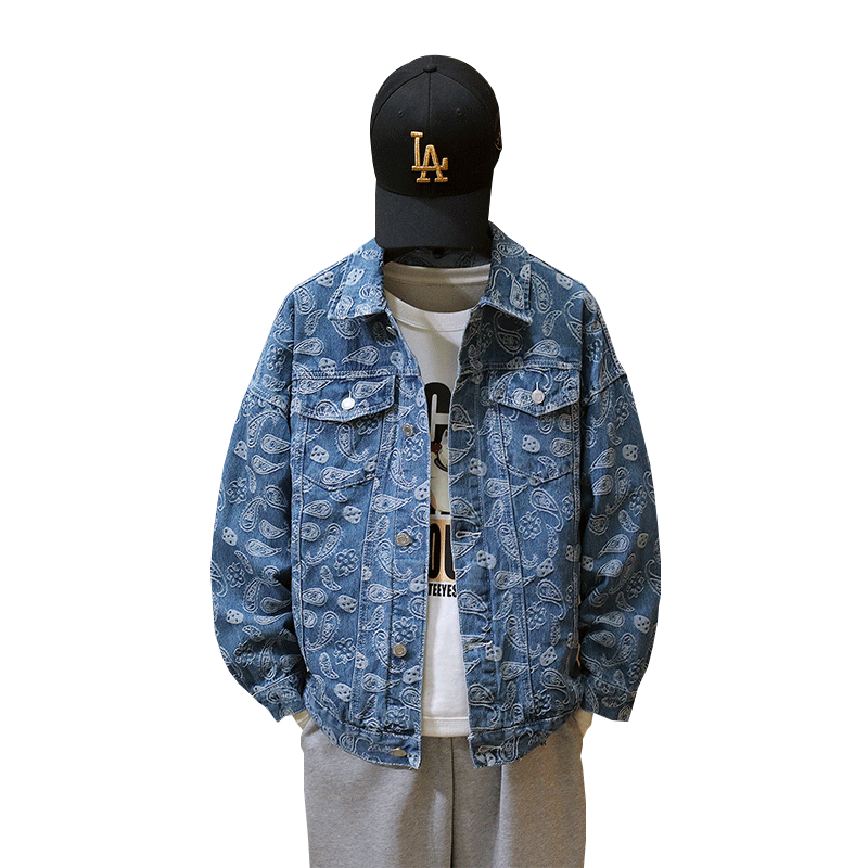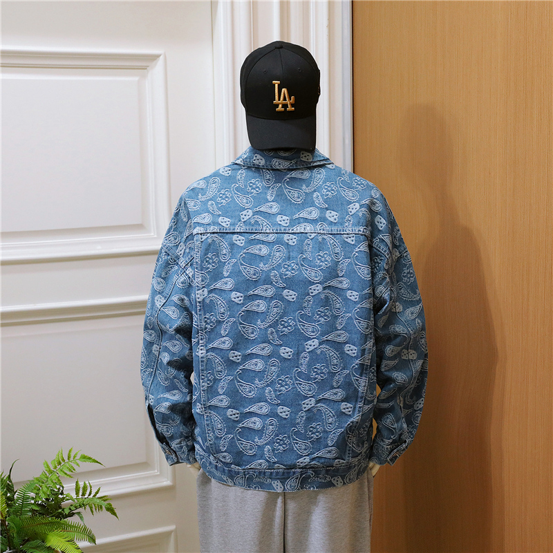 NJK1799青少年秋季新款腰花牛仔落肩袖休闲宽松外套-立体墙挂拍图