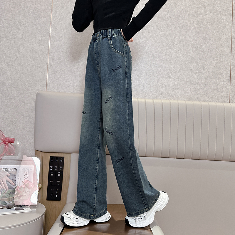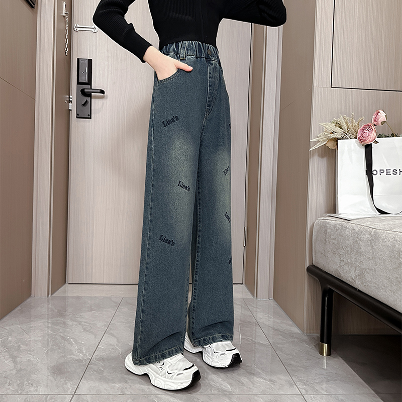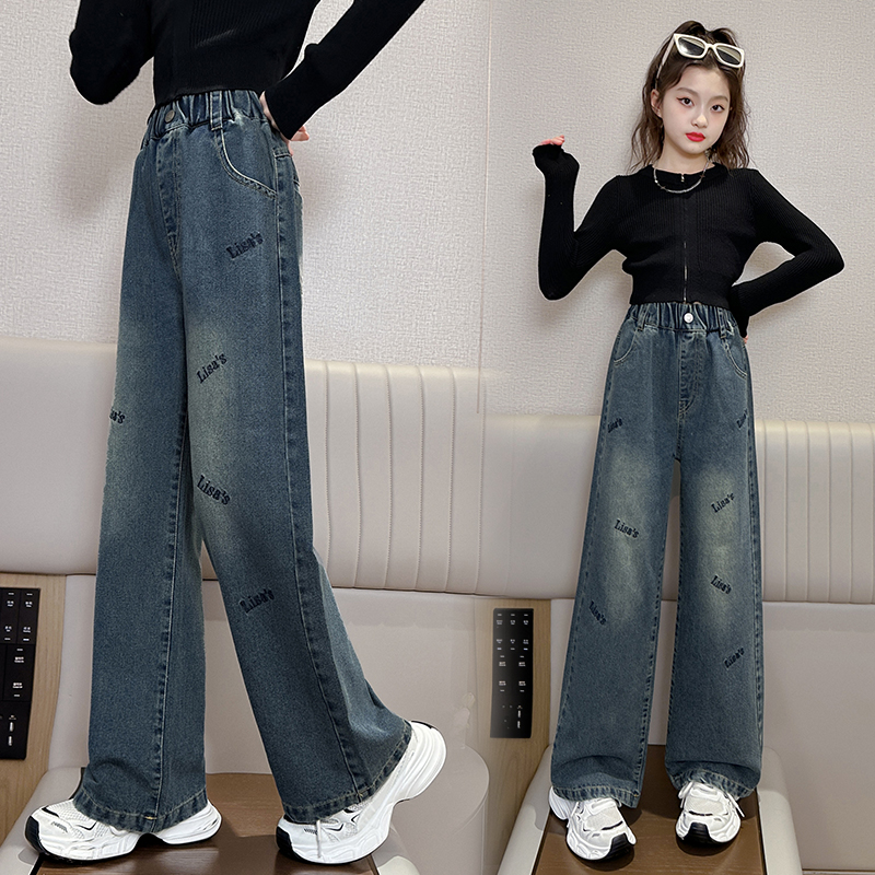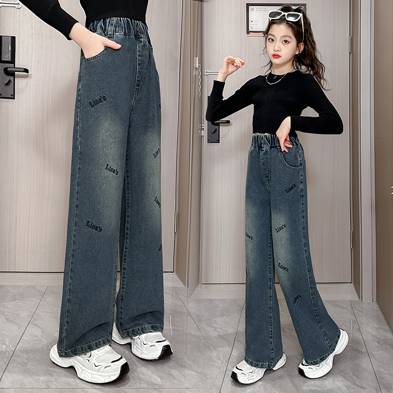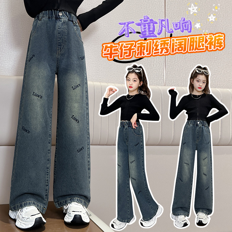 唯爱琪-2扣牛仔阔腿裤女中大童装休闲直筒百搭新款
