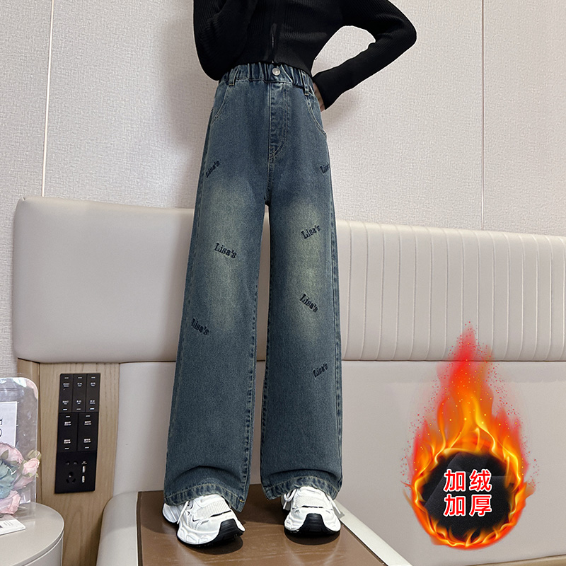 唯爱琪-2021款加绒牛仔裤女中大童直筒休闲舒适秋冬保暖