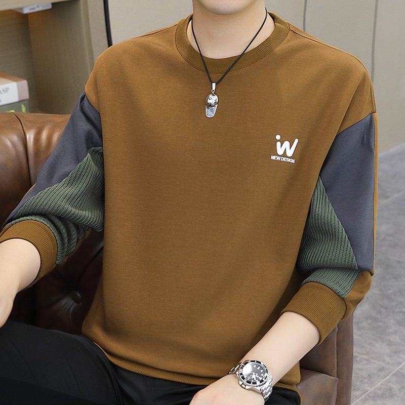 XQ001新款时尚青少年舒适字母拼接打底衫 L 卡其