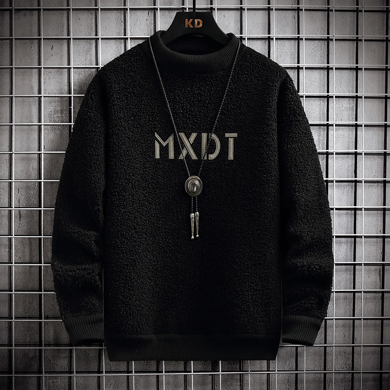 LR9660-1新款时尚百搭男士加绒毛衣开衫-白底模特 3XL 黑色