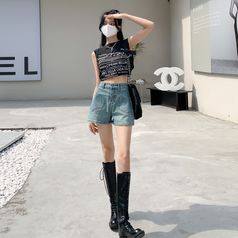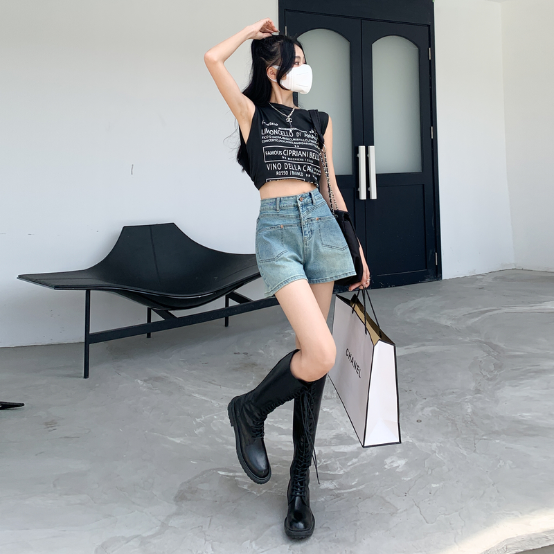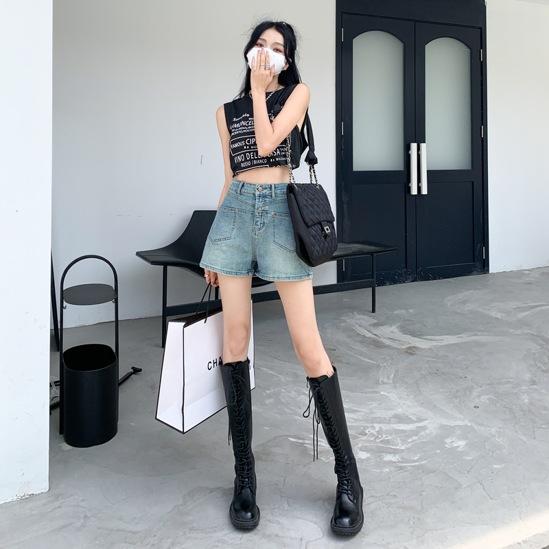 SGGJR615辣妹出街翻脚边设计直筒烟管法棍裤