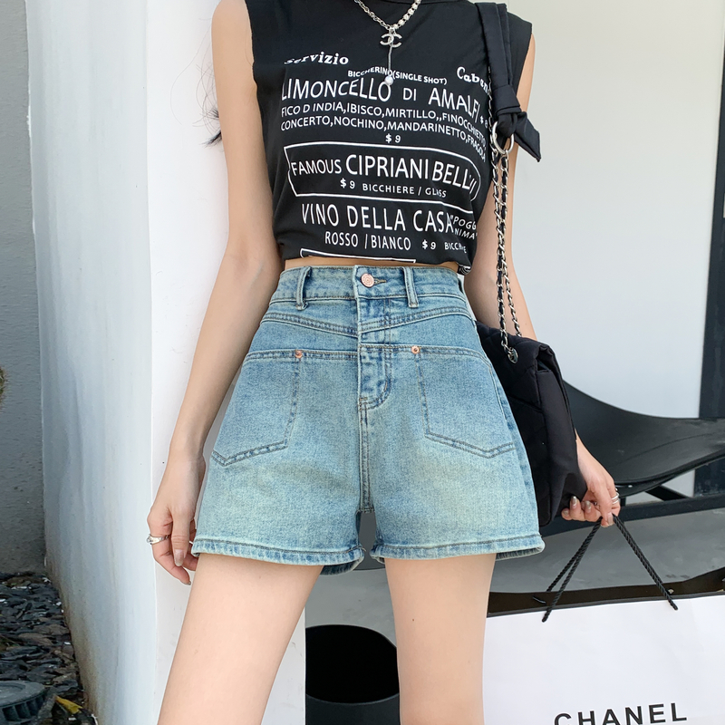 XLDJR809高腰时尚皮牌设计脚口卷边牛仔裤