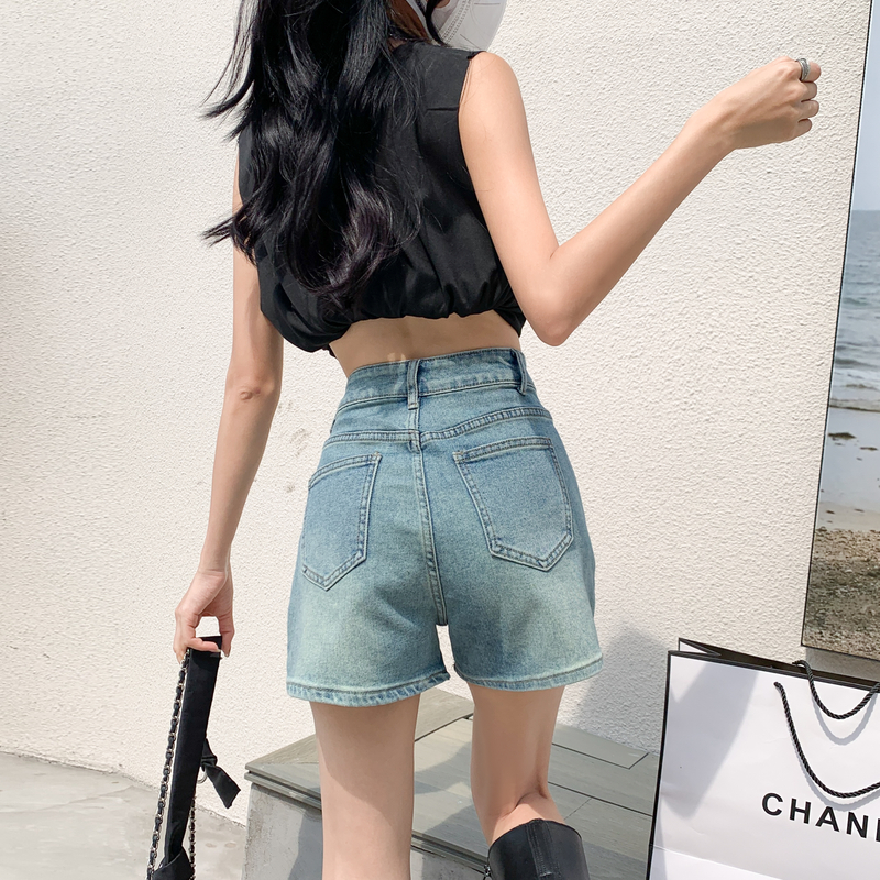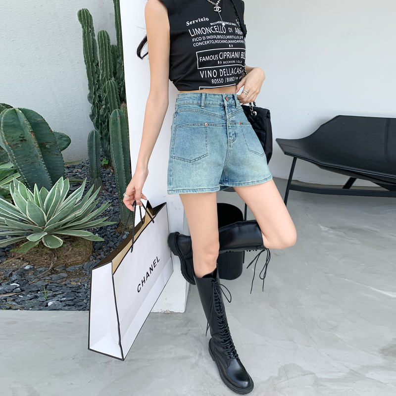 MM1626高腰梨形身材遮胯直筒阔腿牛仔裤 XS 复古蓝九分