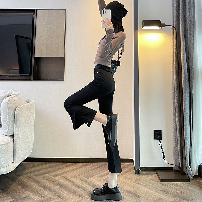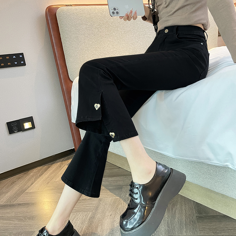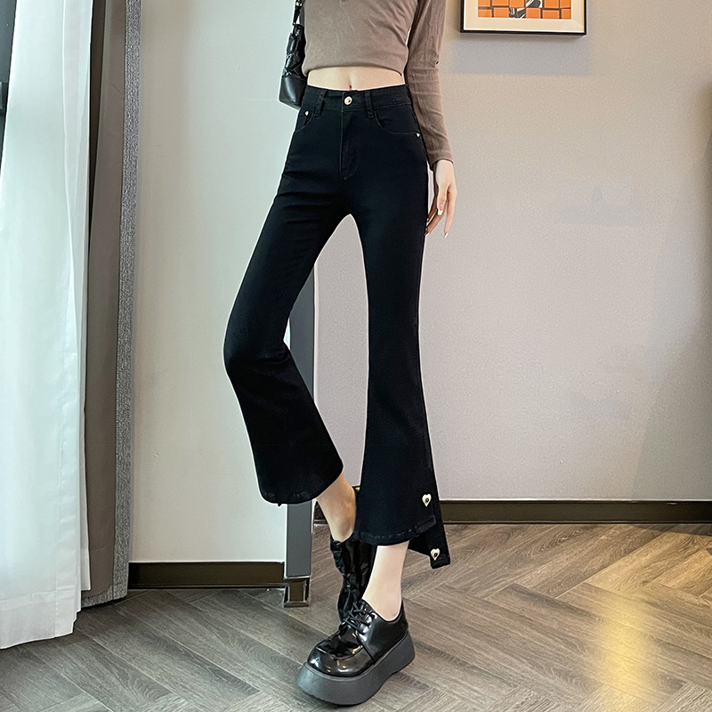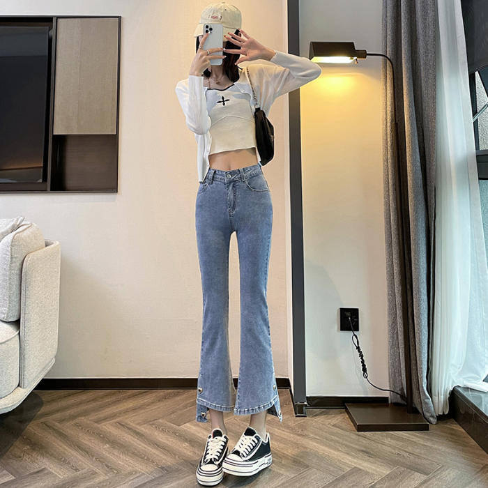 MXNZ878春季新款毛边显瘦马蹄喇叭裤子
