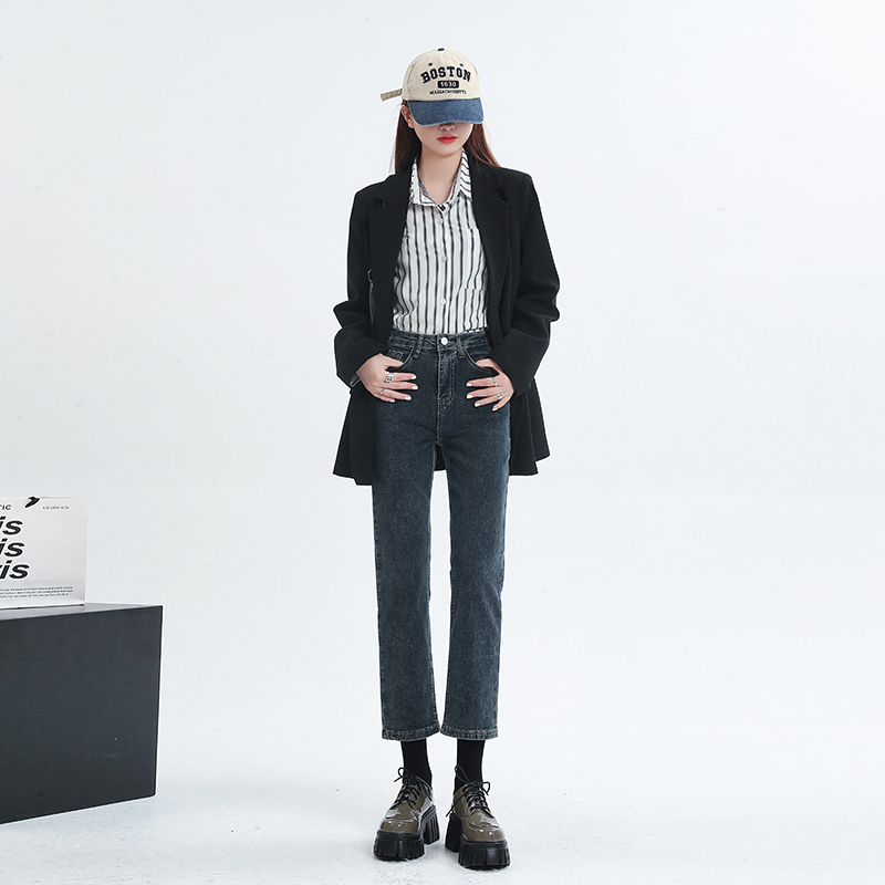 XLDJR1100修身牛仔裤女直筒高腰新款显瘦百搭小个子烟管裤