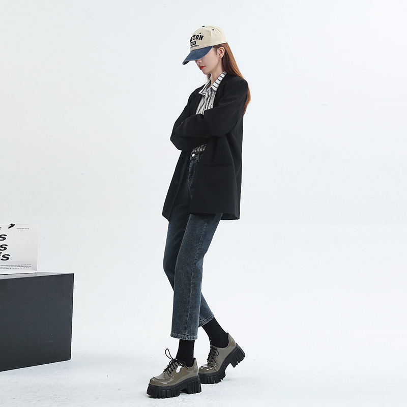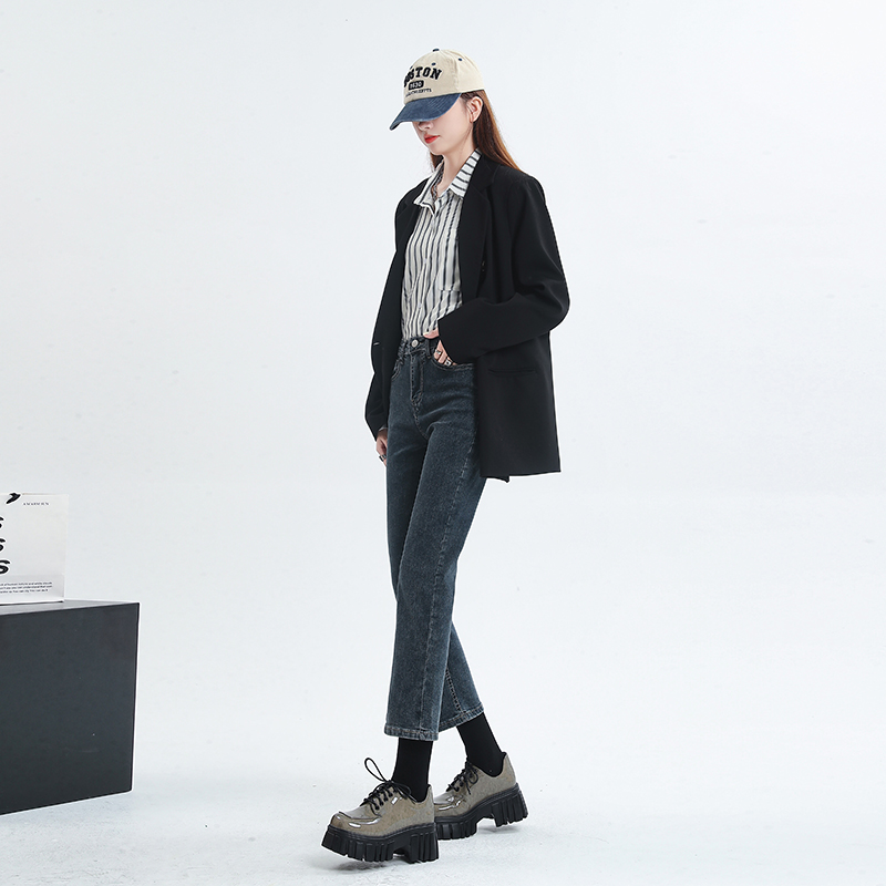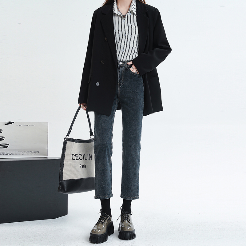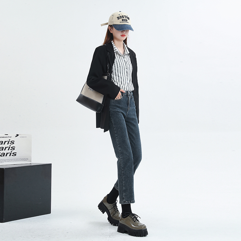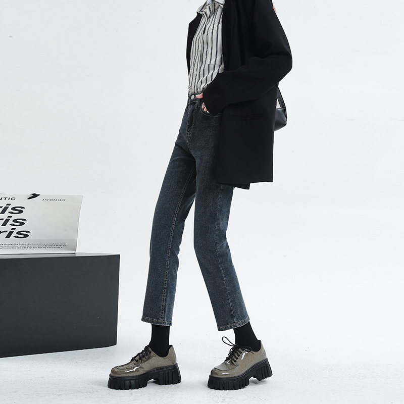 MSLJR1111高腰窄版直筒牛仔裤女小个子新款宽松显瘦烟管裤