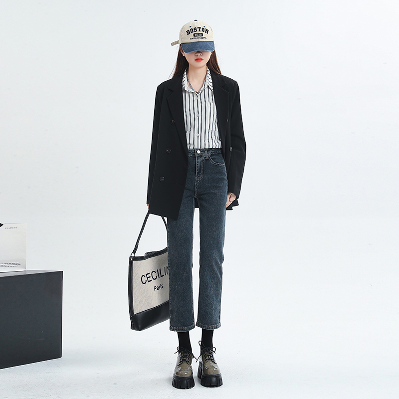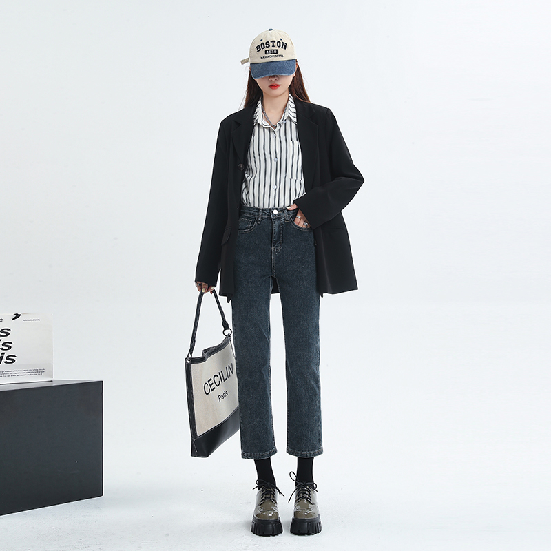 TJJR3320爆款贴牌直筒九分牛仔裤修身显瘦宽松高腰潮ins烟管裤
