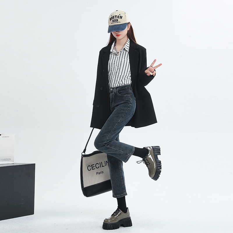 DJ3991高腰微喇牛仔裤女四季新款辣妹港风休闲弹力显瘦喇叭裤