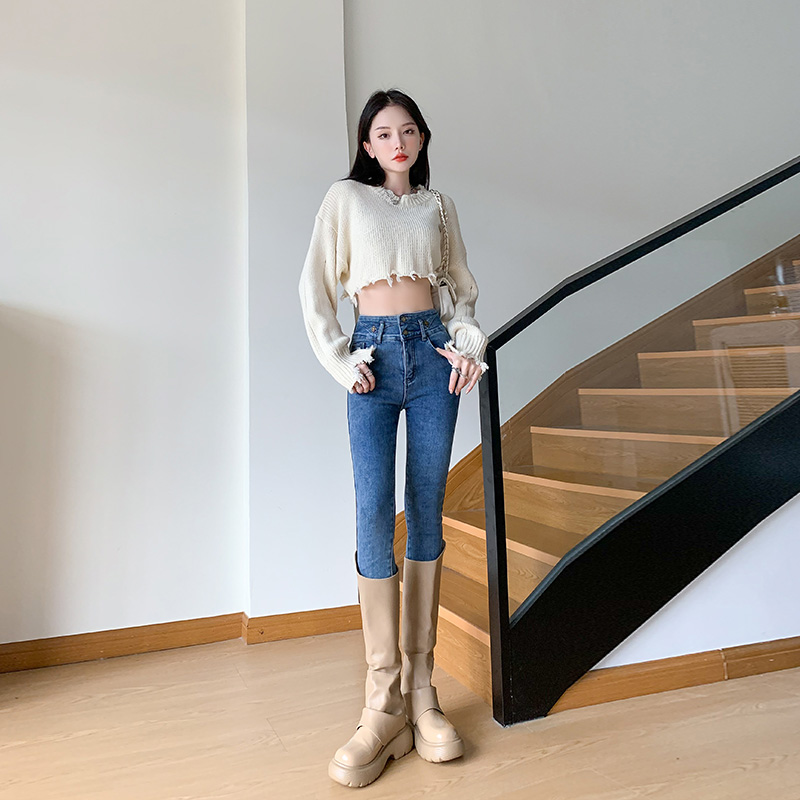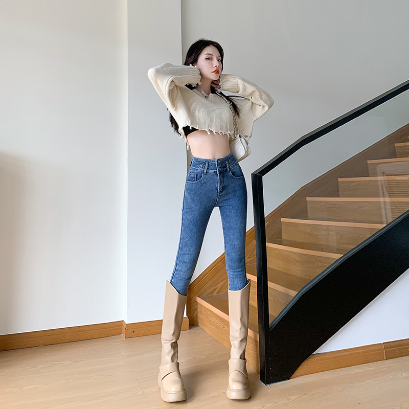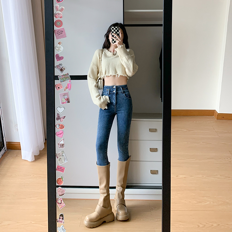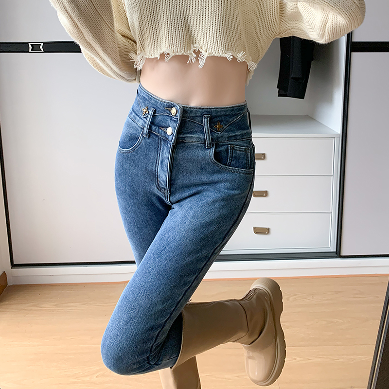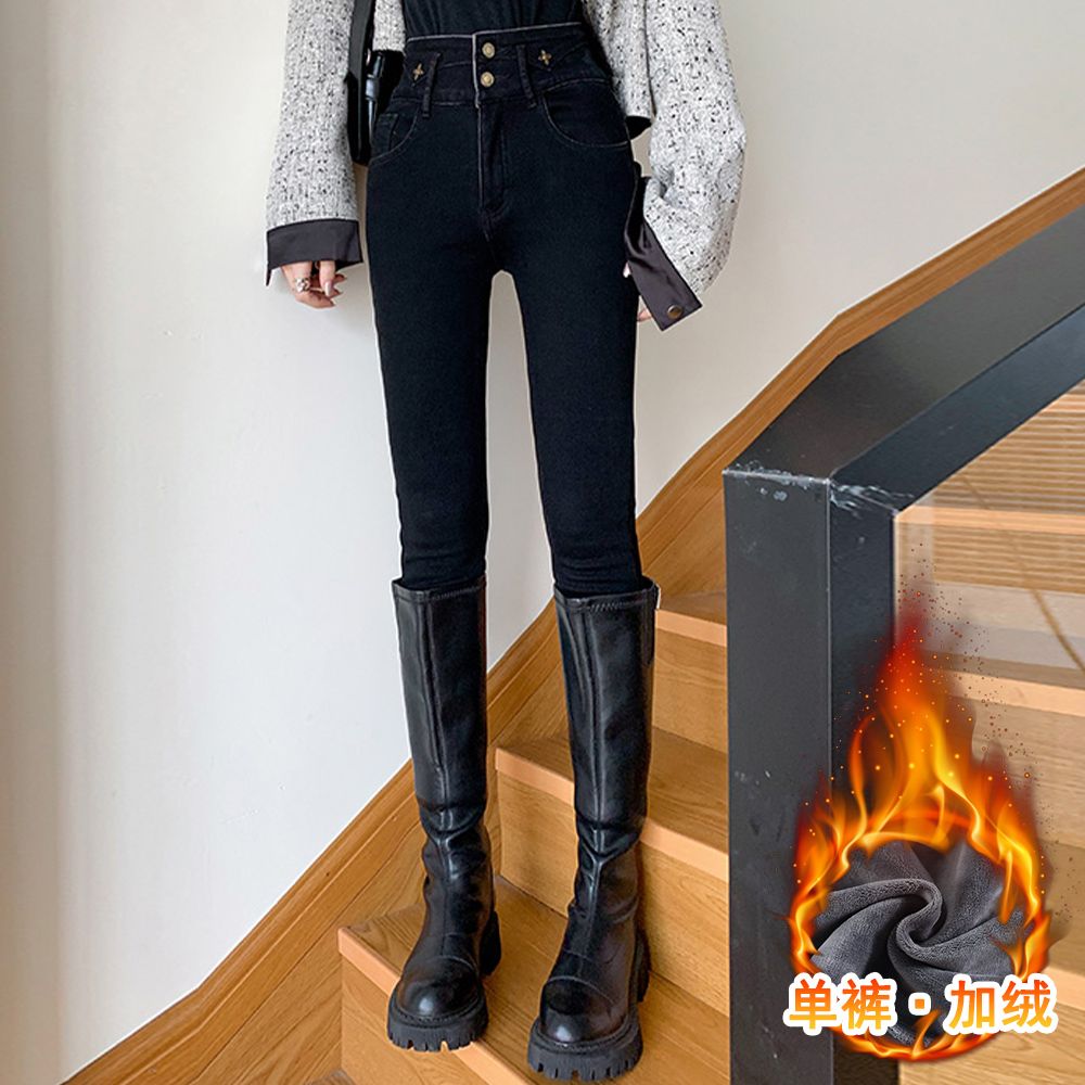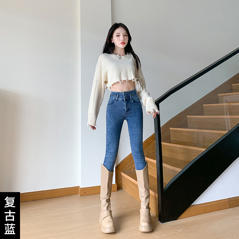 CDJR9217高腰牛仔裤女秋冬新款显瘦修身加绒小脚铅笔裤