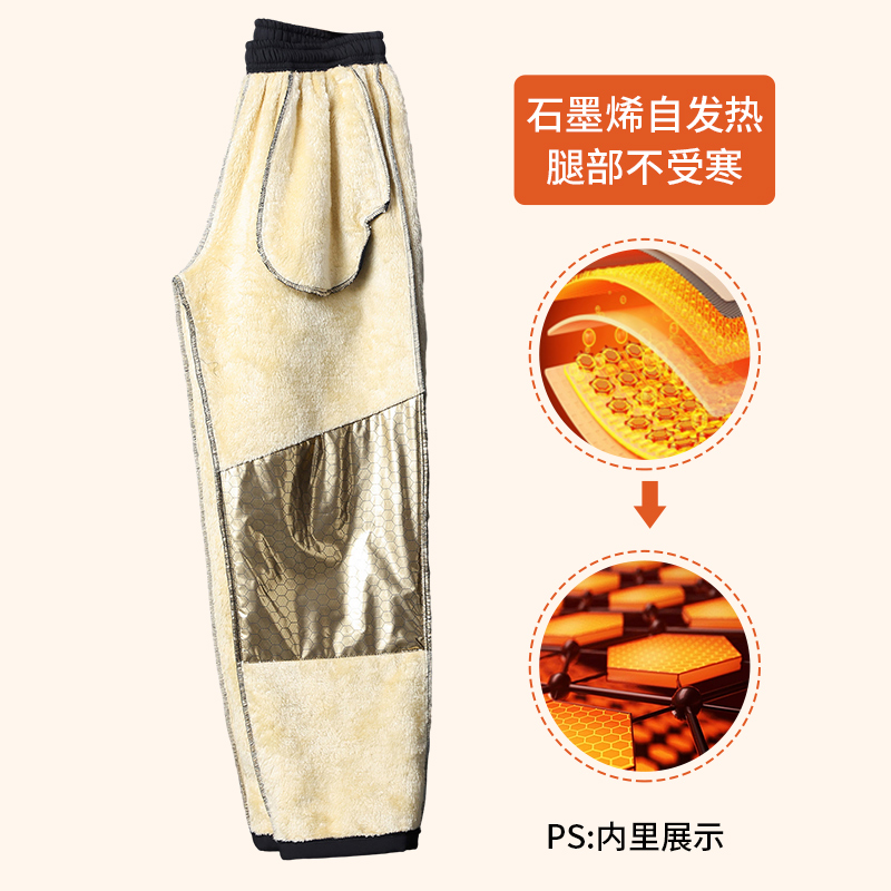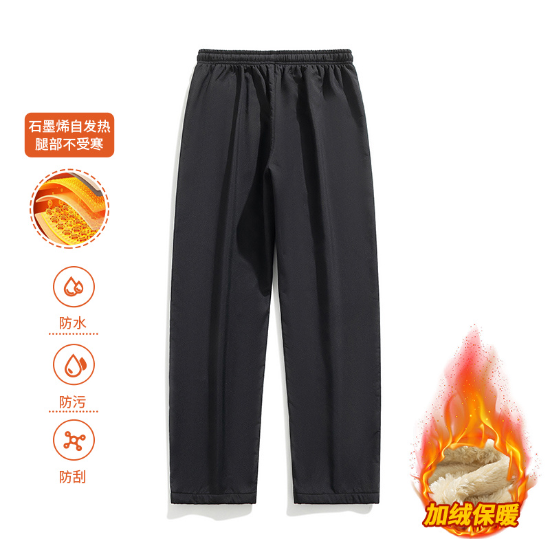 冬季新款石墨烯自发热羊羔绒平脚休闲裤白底平铺-1889 4XL 黑色