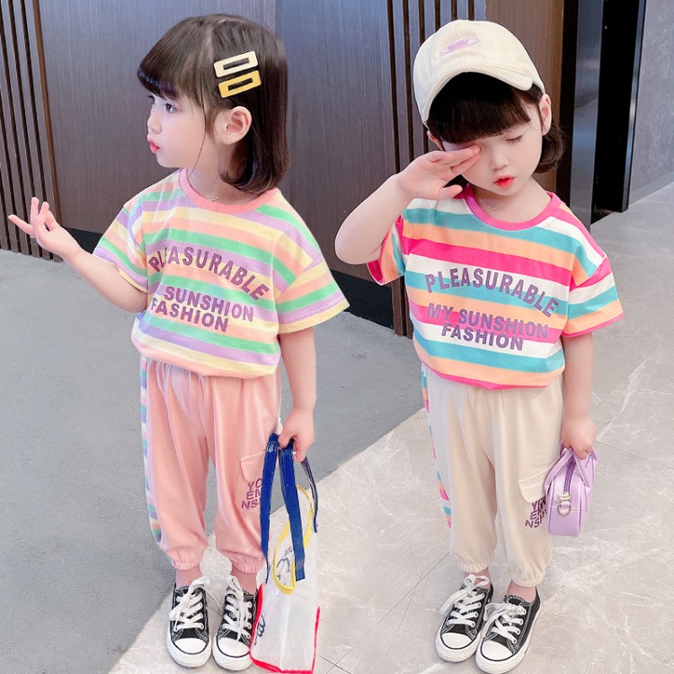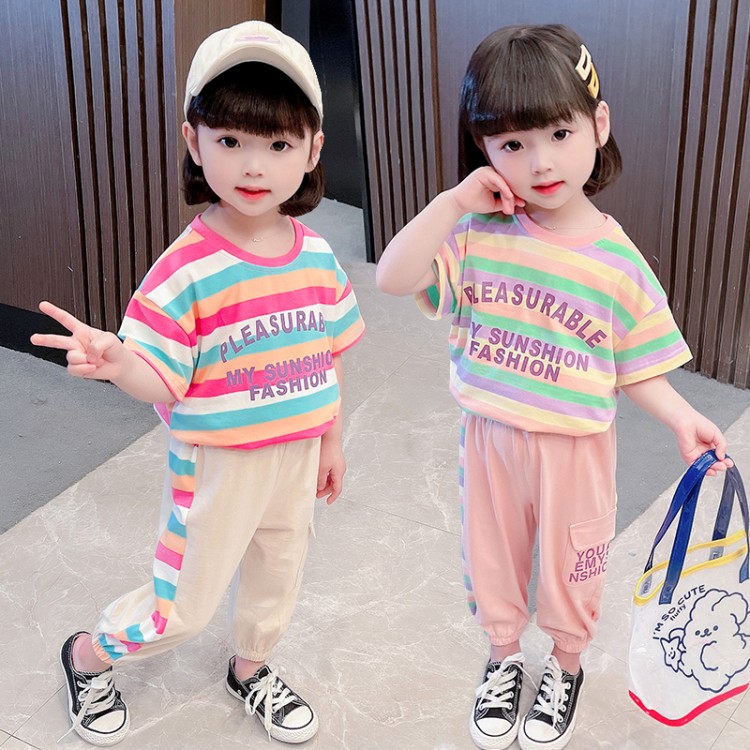 小鹿家&彩条纹套长裤款 80 粉色裤子