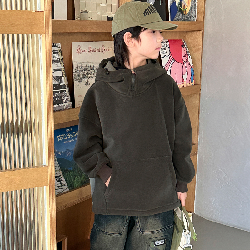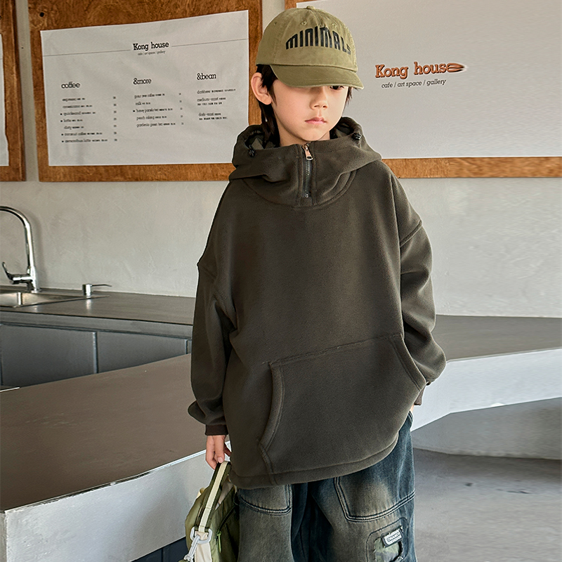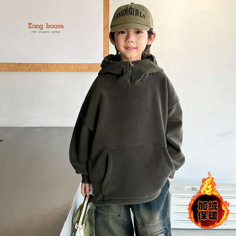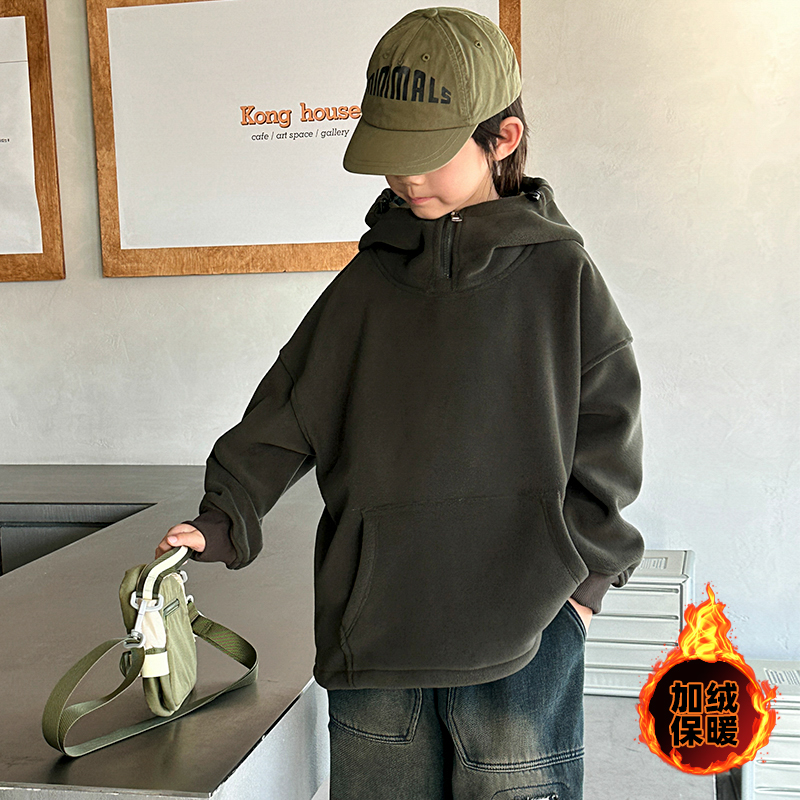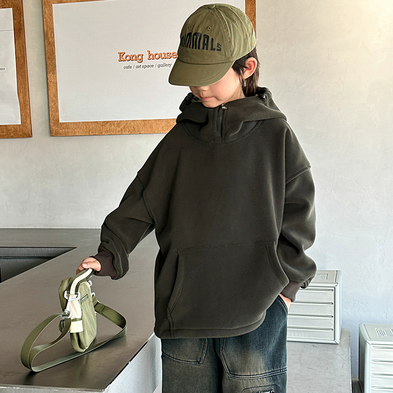 WSNDW5652新款时尚舒适休闲胸前拉链纯色卫衣 120 墨绿色