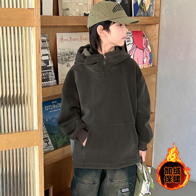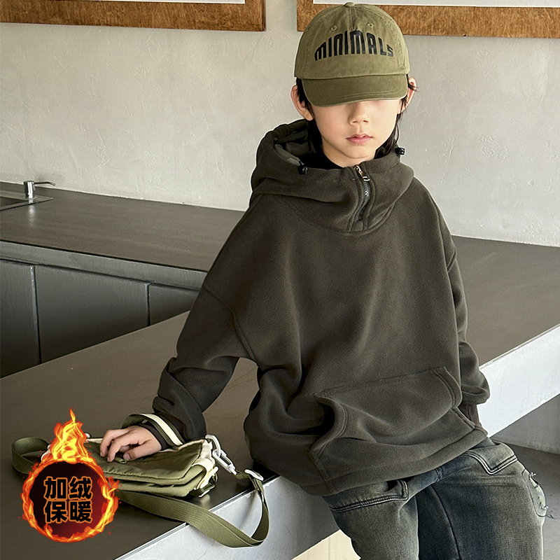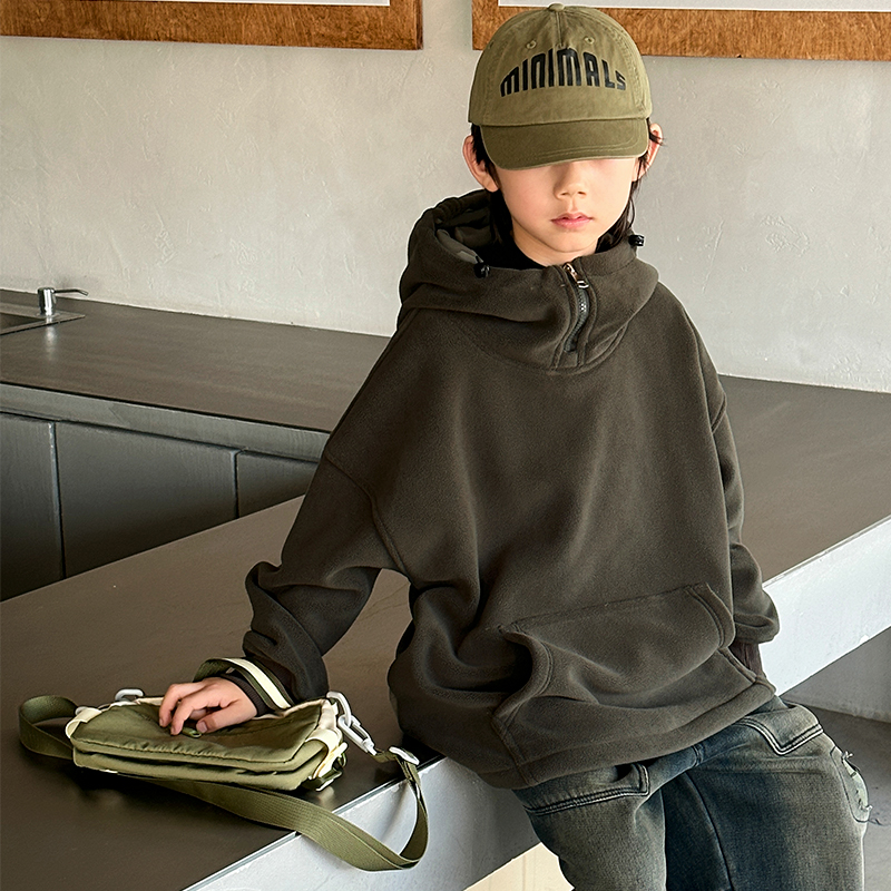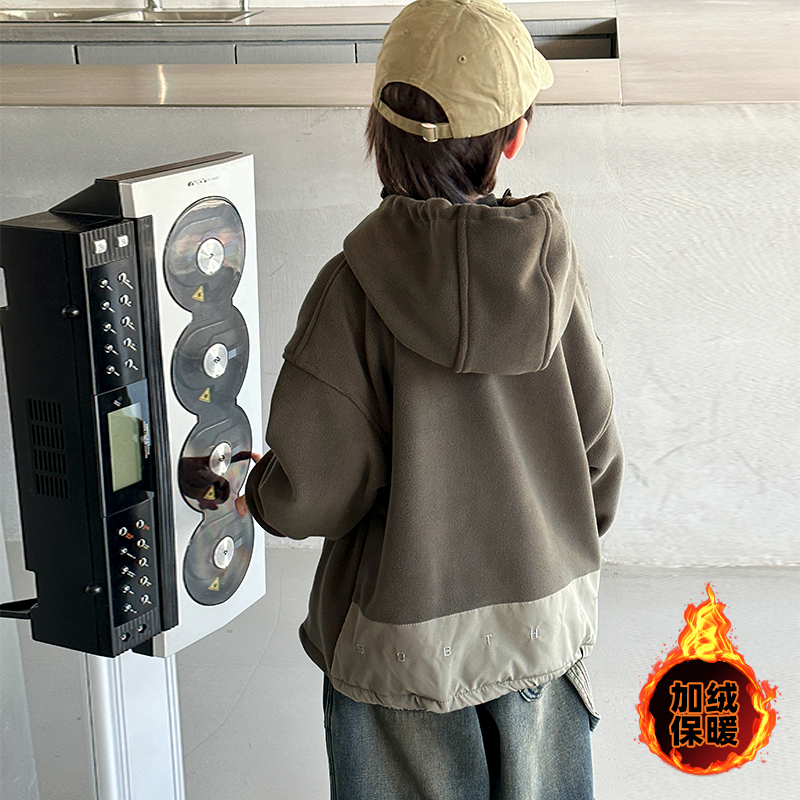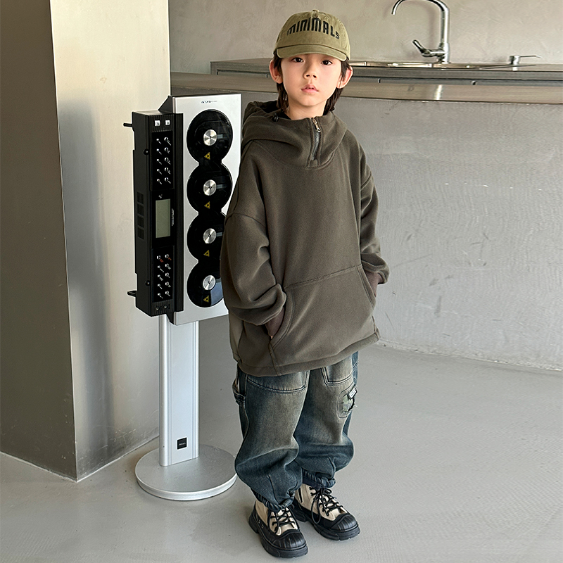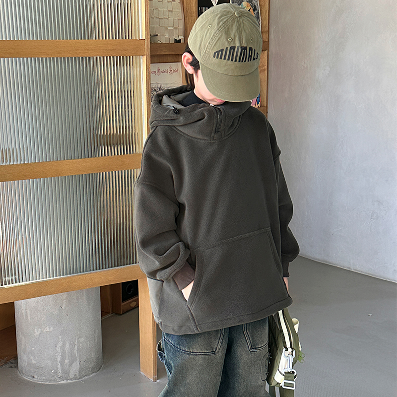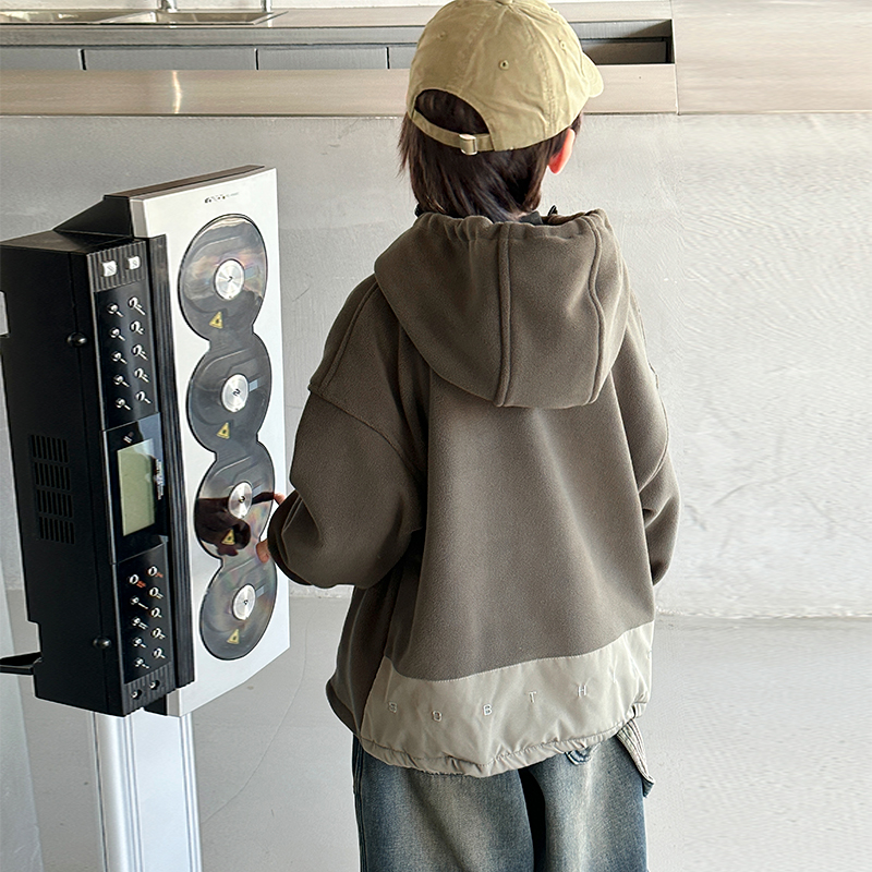 金多多童装-ZFQD1035渐变灰字母连帽卫衣