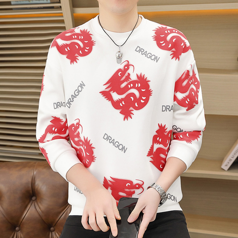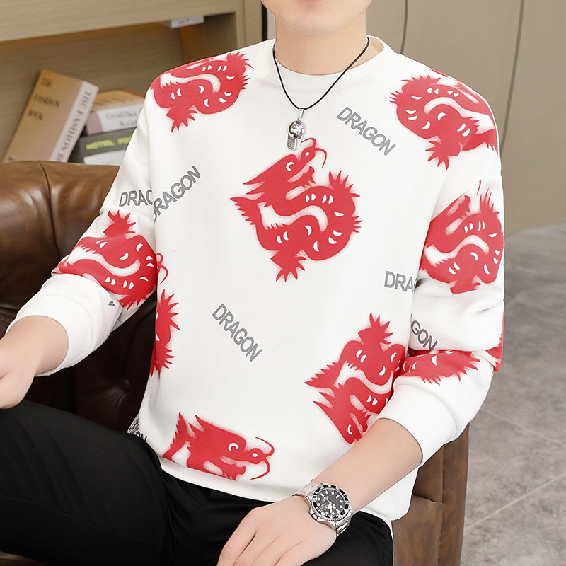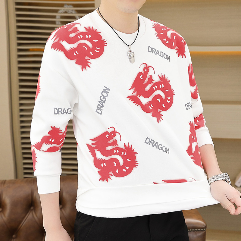【小柒家】2025冬季新款字母刺绣青少年打底衫加绒加厚男士9910-1 M 白色