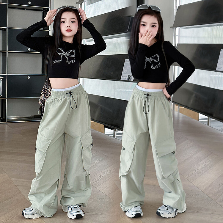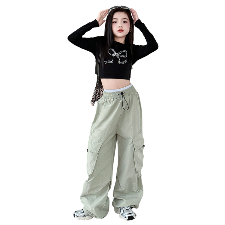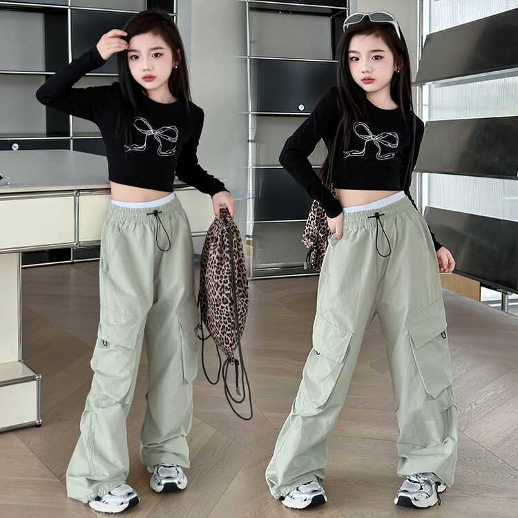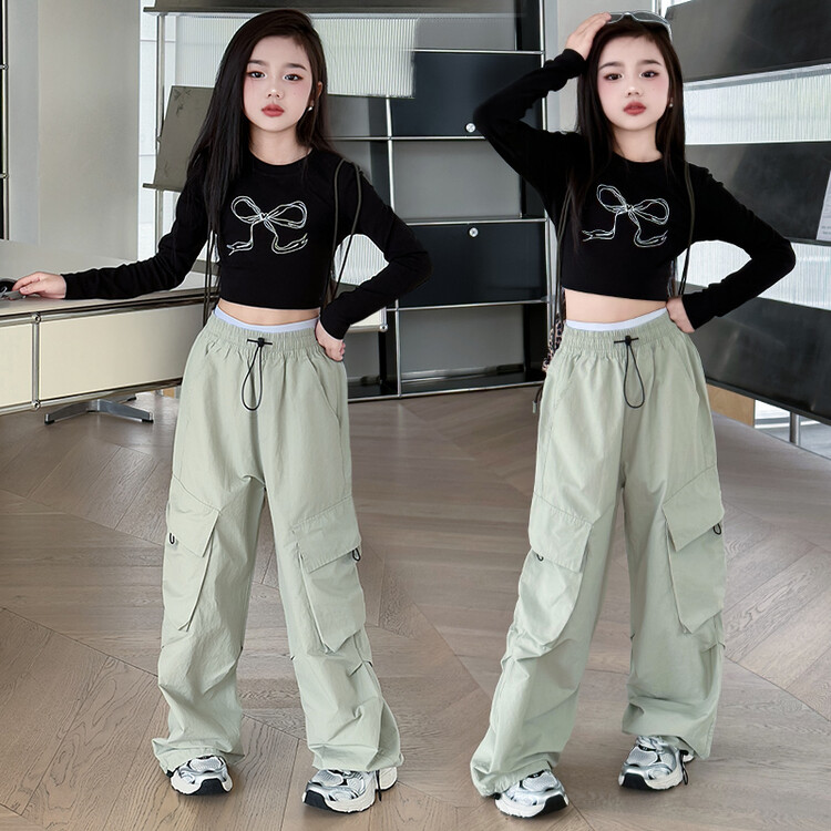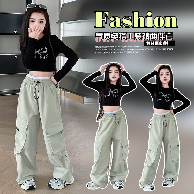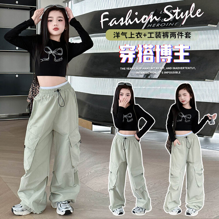 乐橙-LC5813拼色上衣工装裤套装 120cm 工装裤