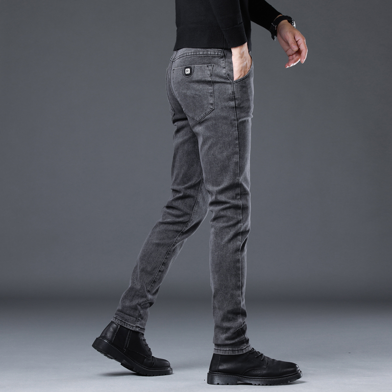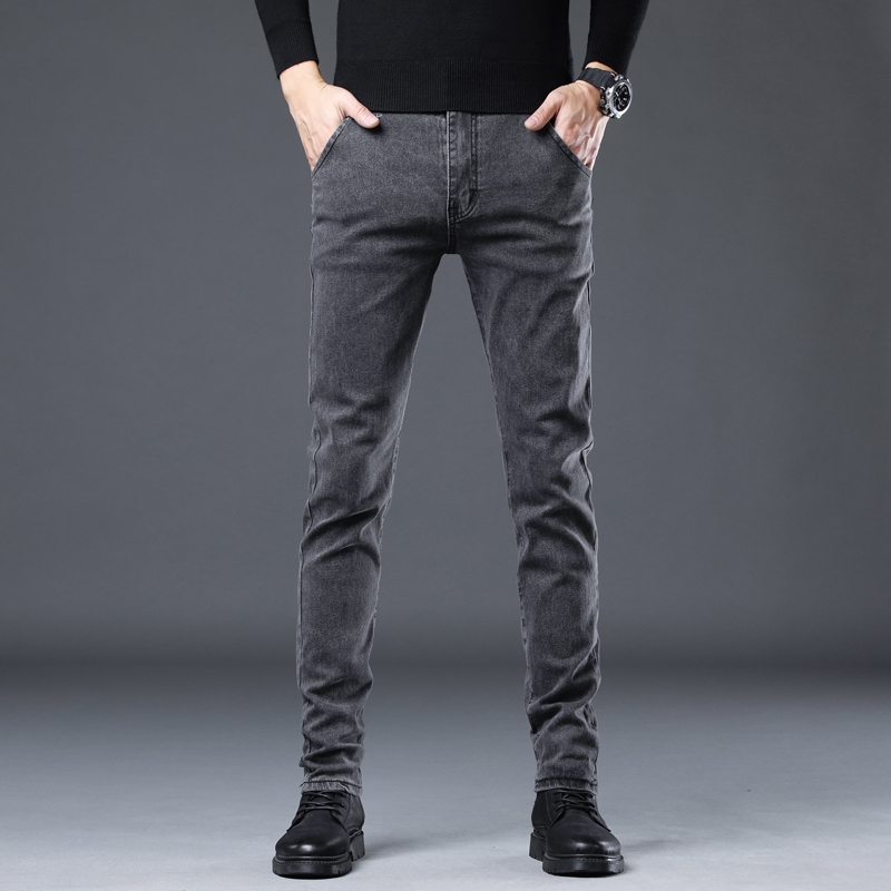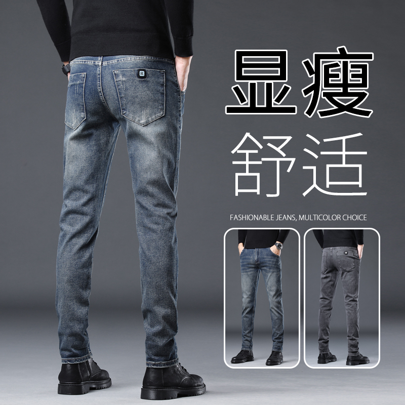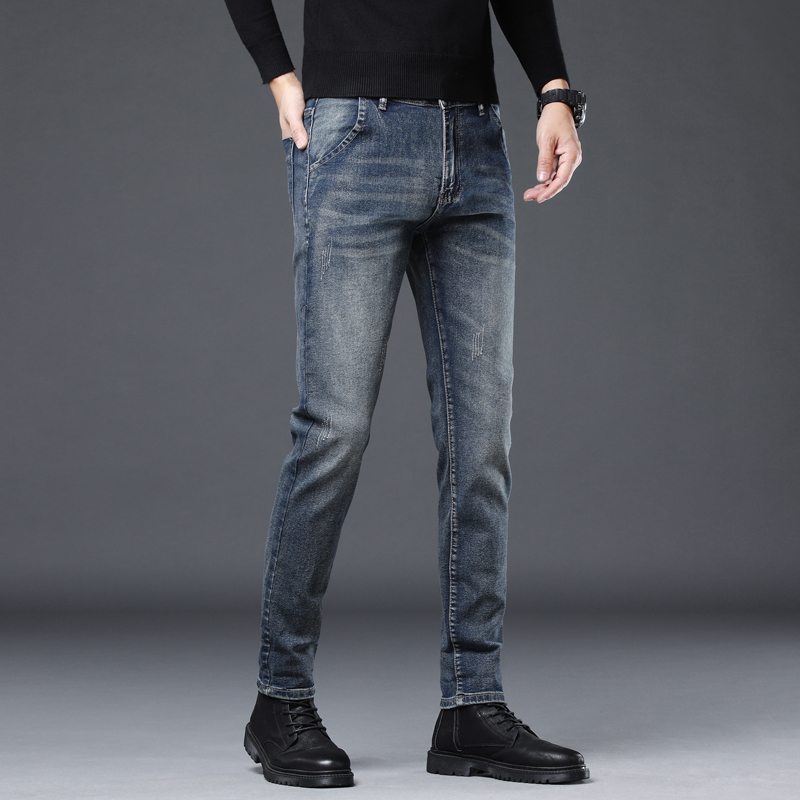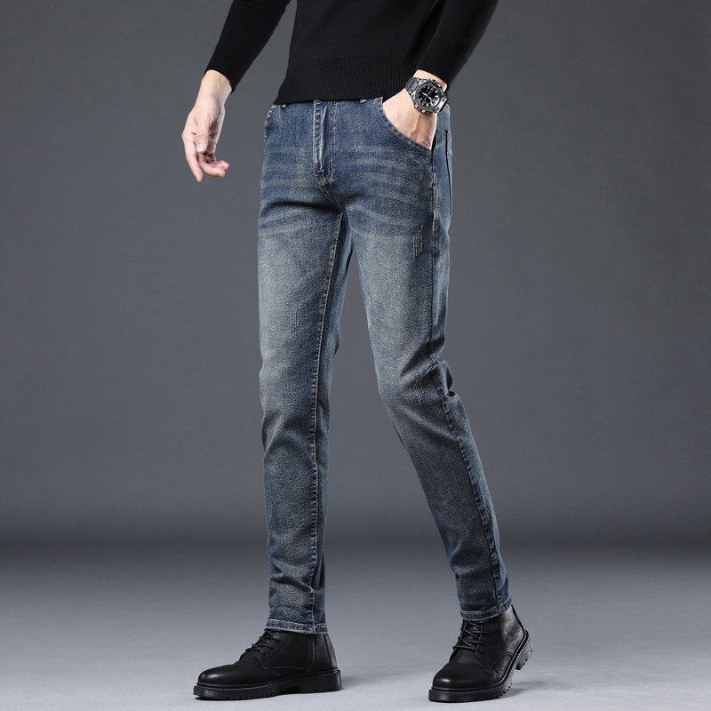 春秋季修身小脚牛仔裤男复古痞帅弹力休闲洗水直筒长裤N81