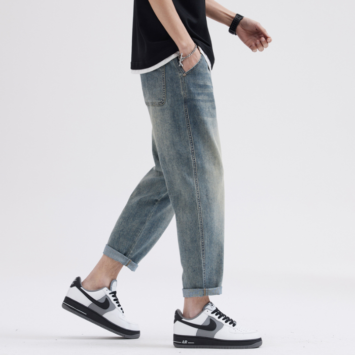 2024夏季新款锥形牛仔裤男士宽松直筒显瘦水洗日系休闲九分裤潮