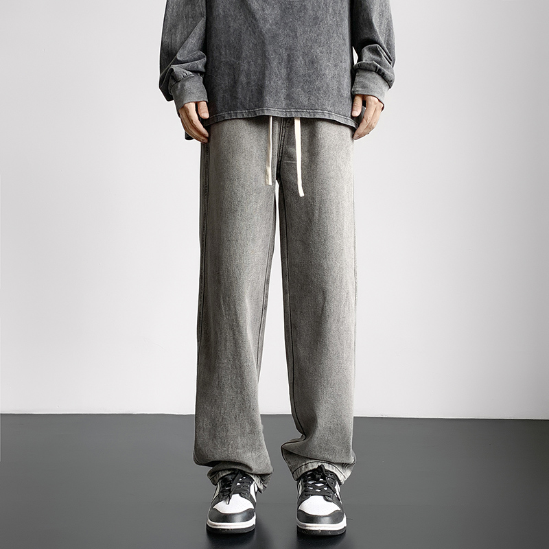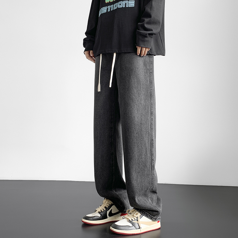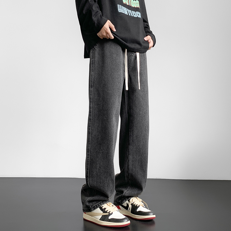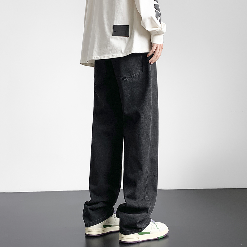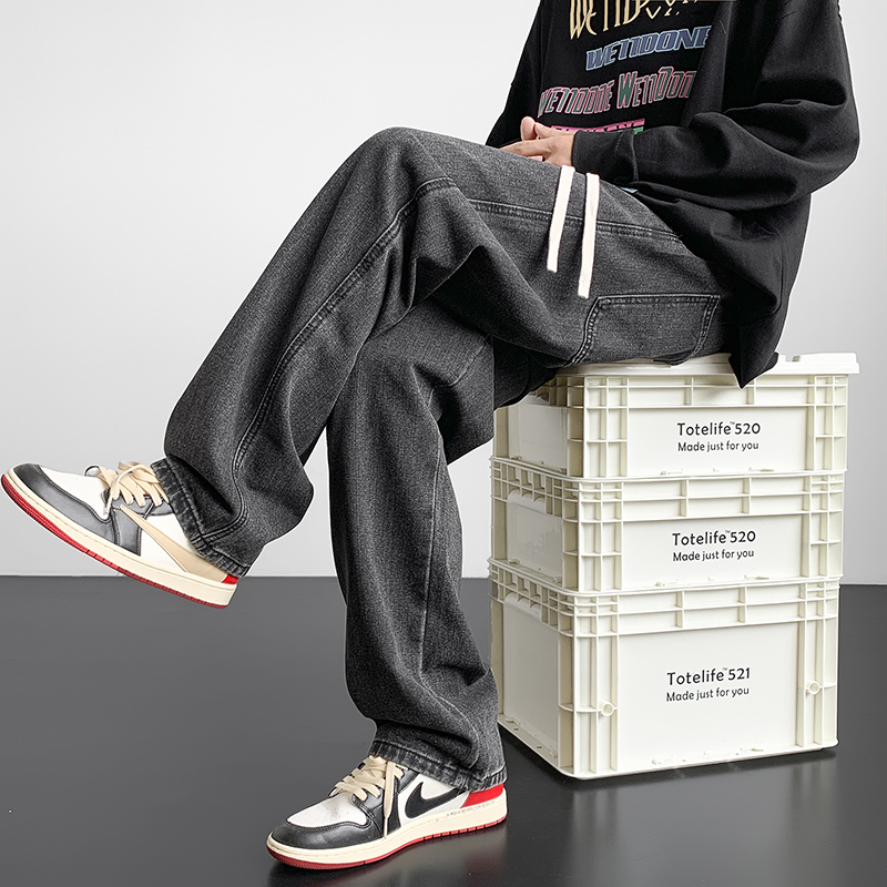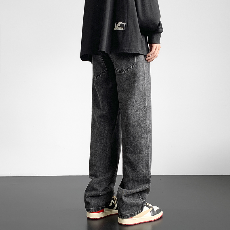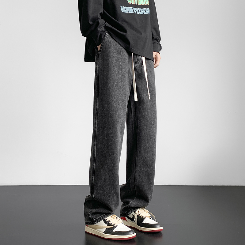TS02款男士新款直筒休闲牛仔裤潮流时尚百搭--黑底板背景 S 黑灰色