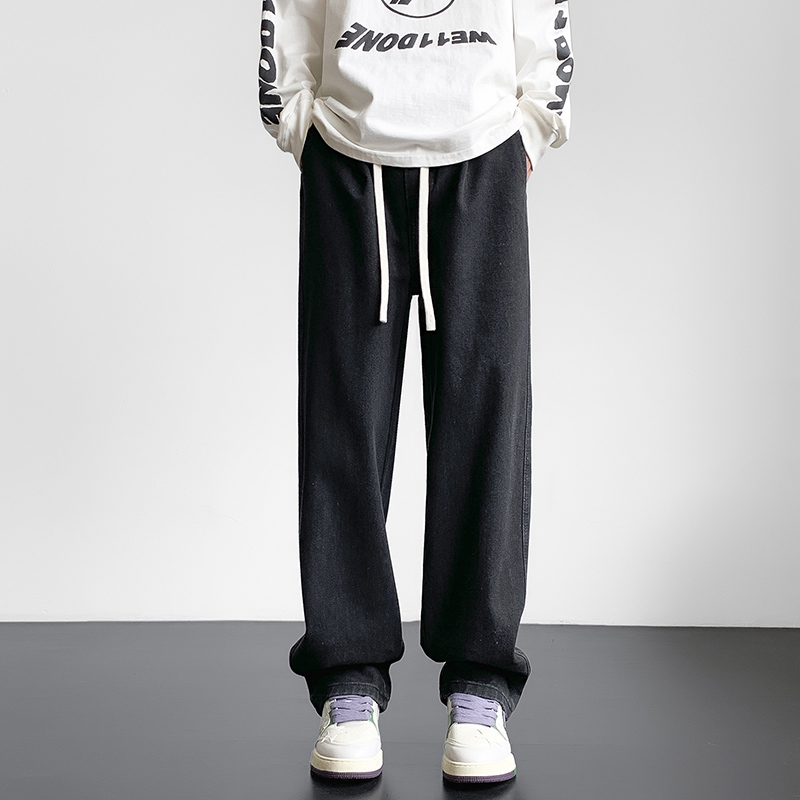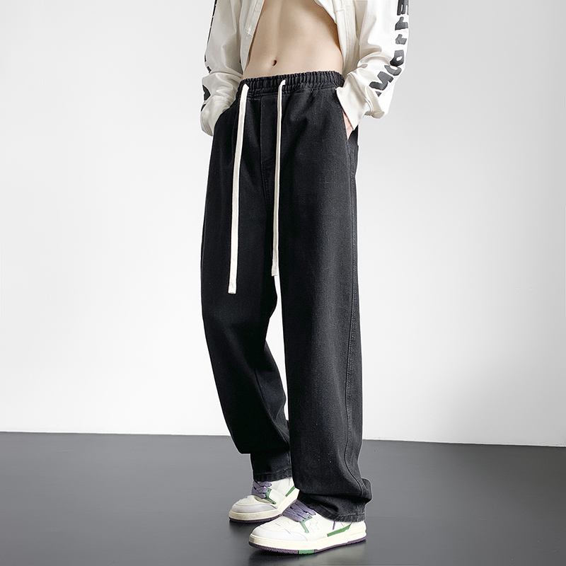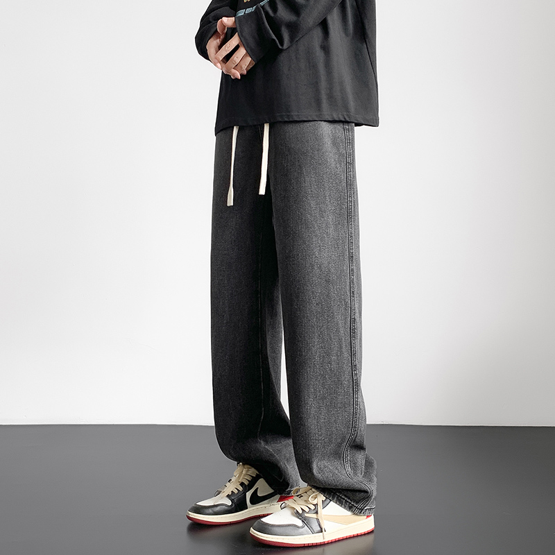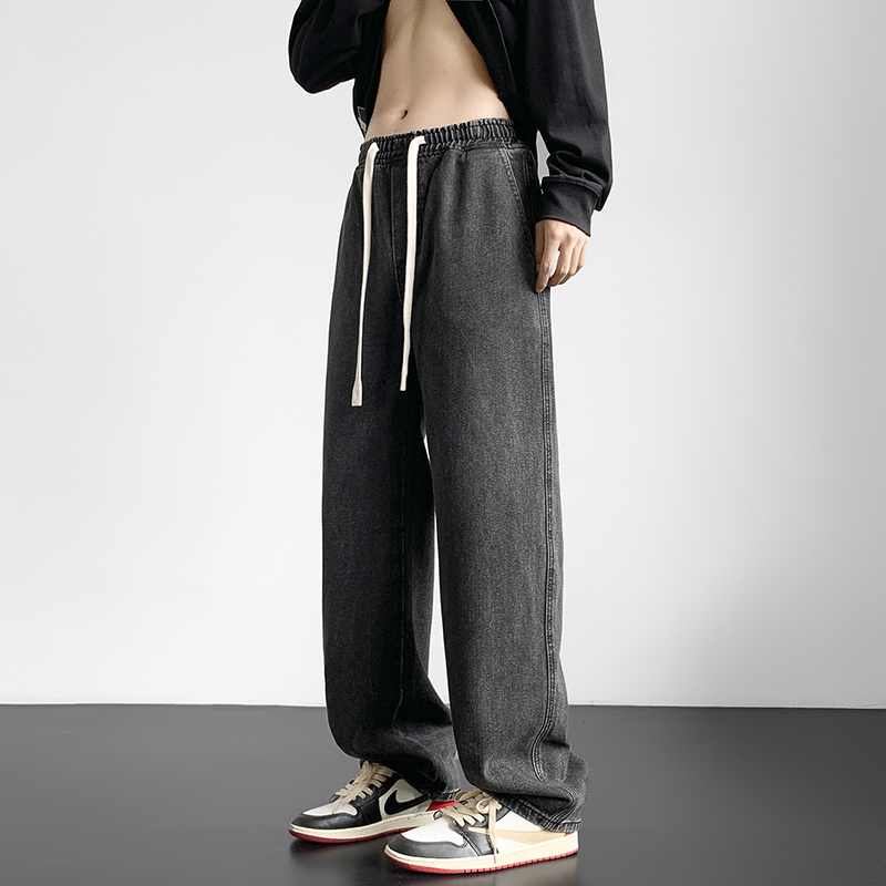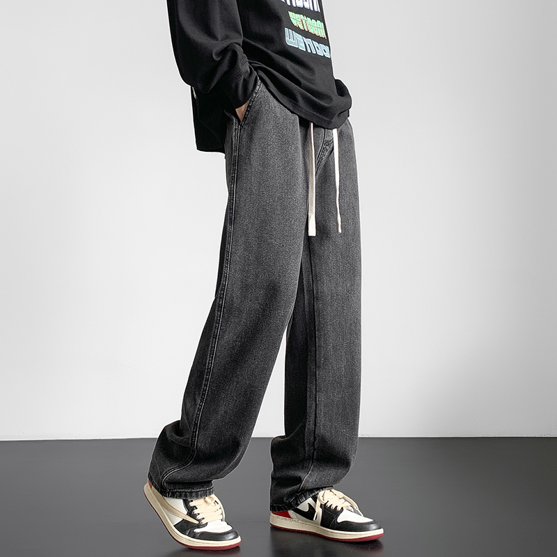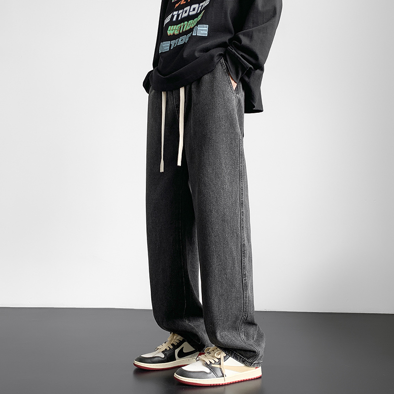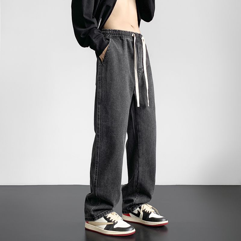 TS02款男士新款直筒休闲牛仔裤潮流时尚百搭--黑底板背景 S 黑灰色