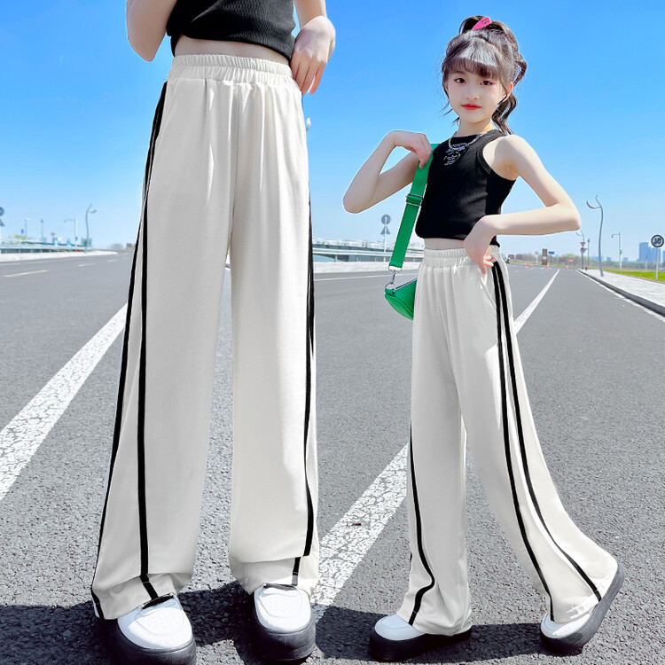 女童时尚百搭舒适侧边条复古牛仔阔腿裤