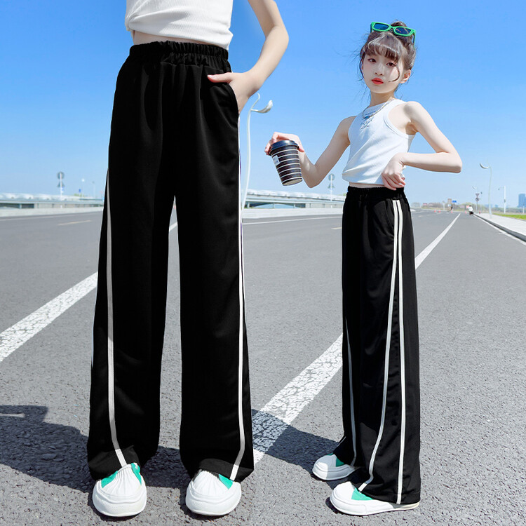新款潮童高腰垂感盘扣阔腿裤 120 黑色
