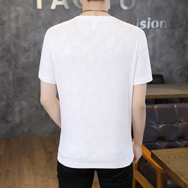 9025潮流舒适男新款压花短袖T恤 L 白色