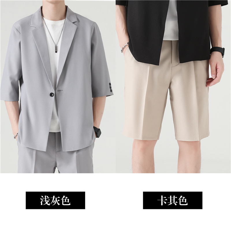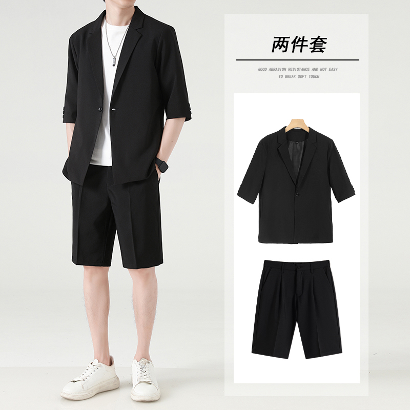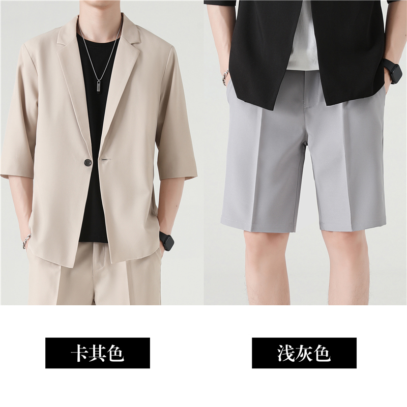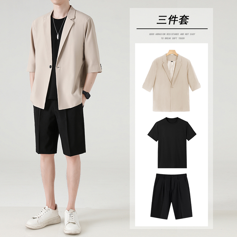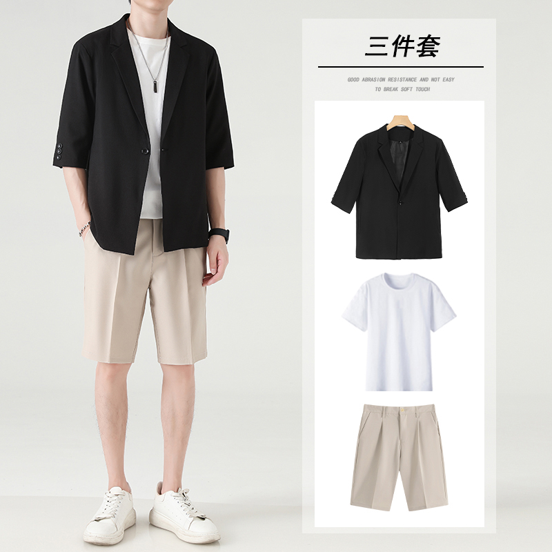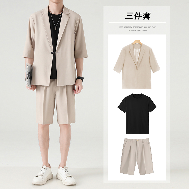 TZ-TX10DK商务休闲五分袖西服+T恤+短裤三件套(春夏季)