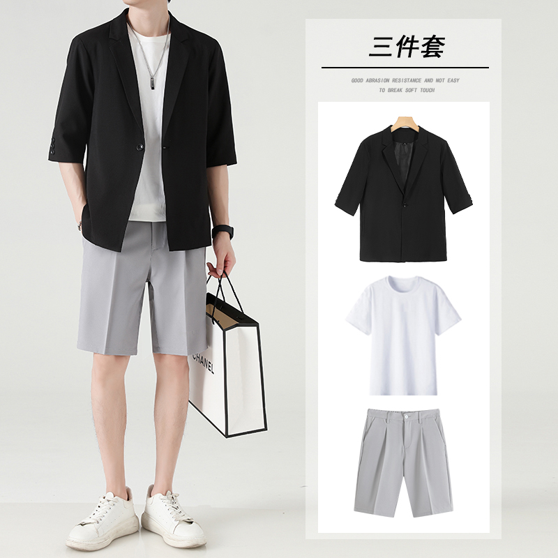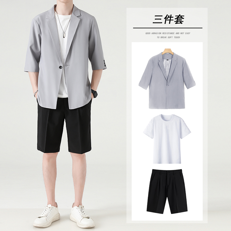 TZ-TX10潮流时尚五分袖西服+T恤+西裤三件套(春夏季)