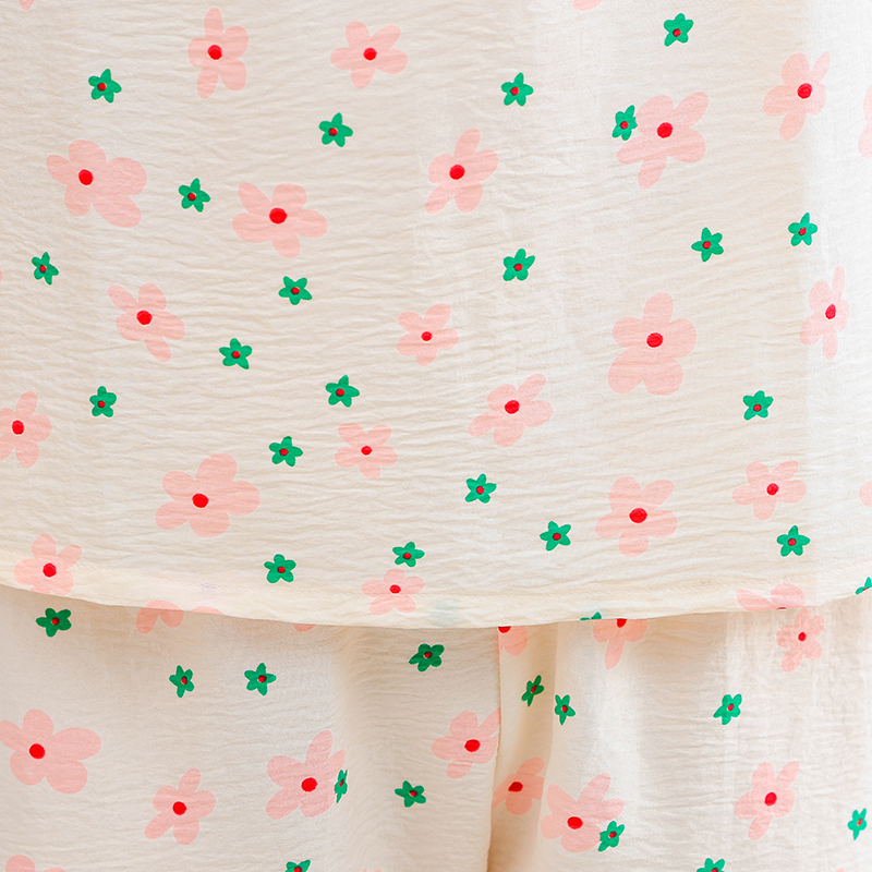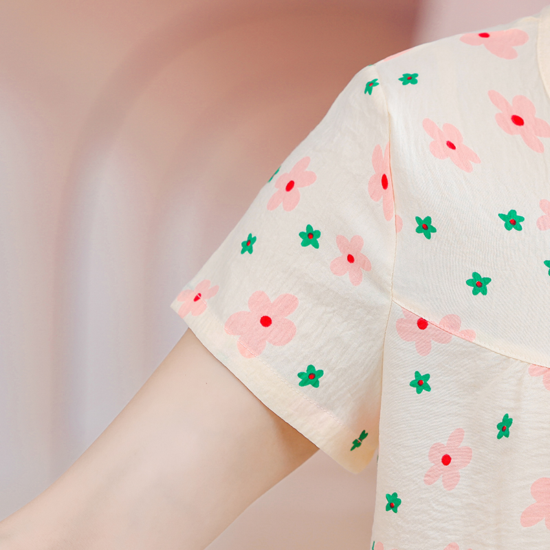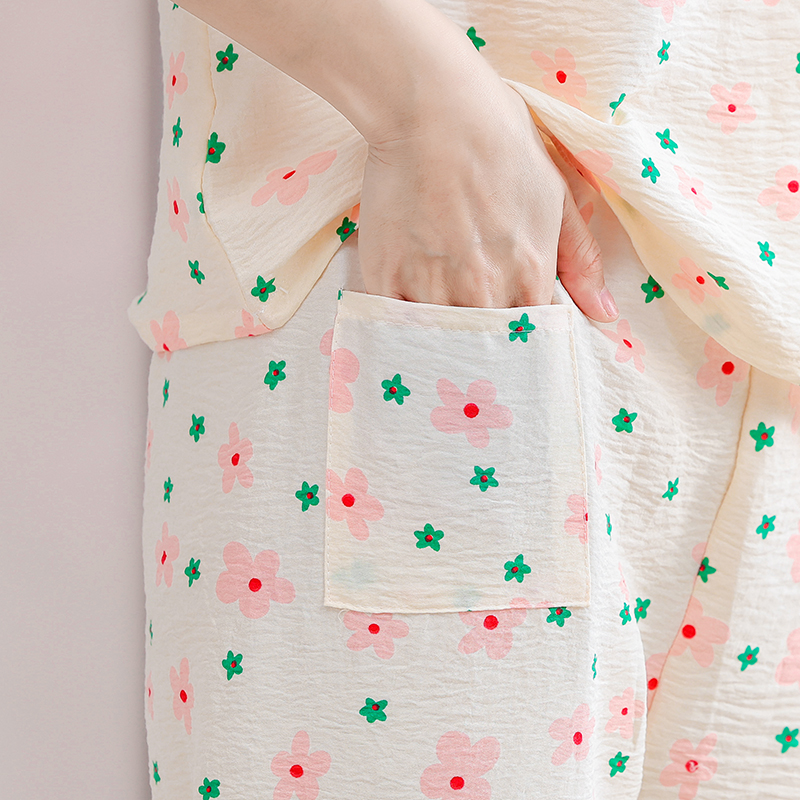 棉绸短袖长裤开衫套装-2305 XL 紫色花朵