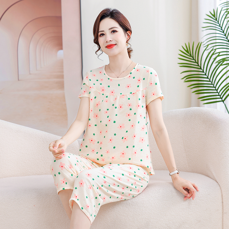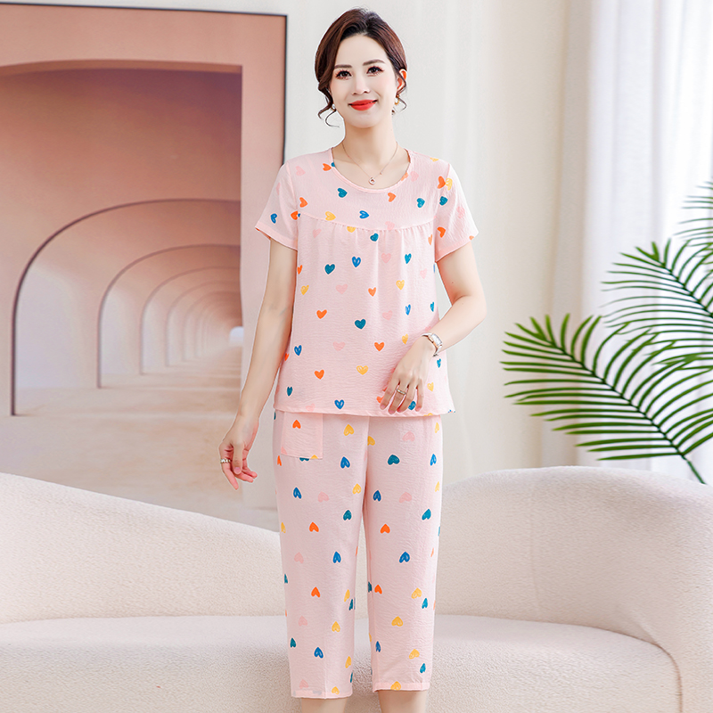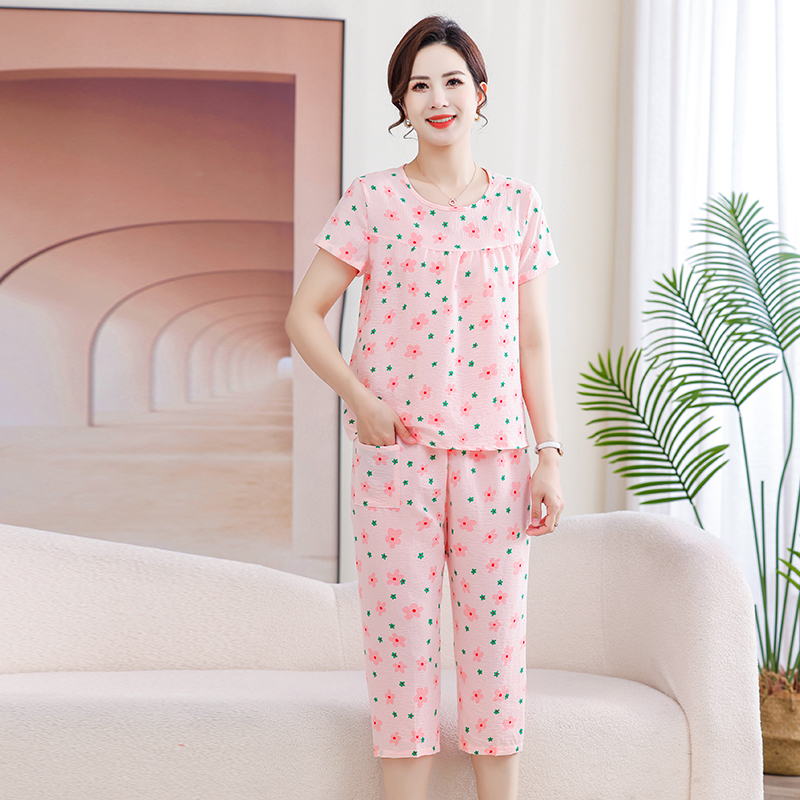 J13新款舒适休闲奶奶家居服套装-白底挂拍图