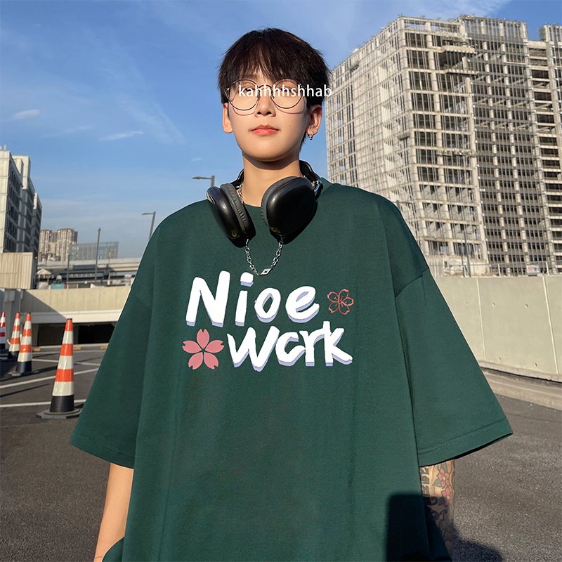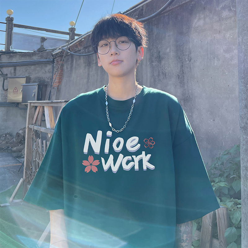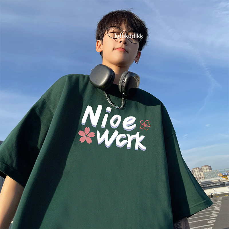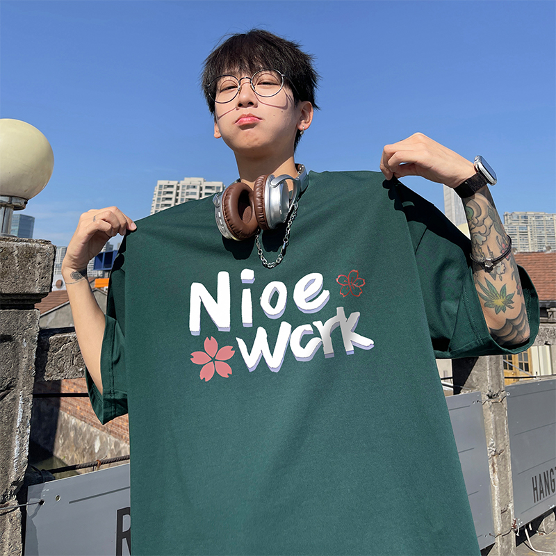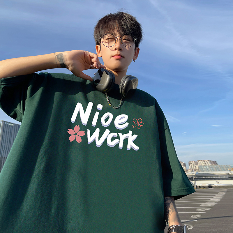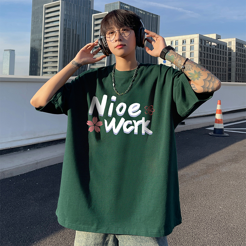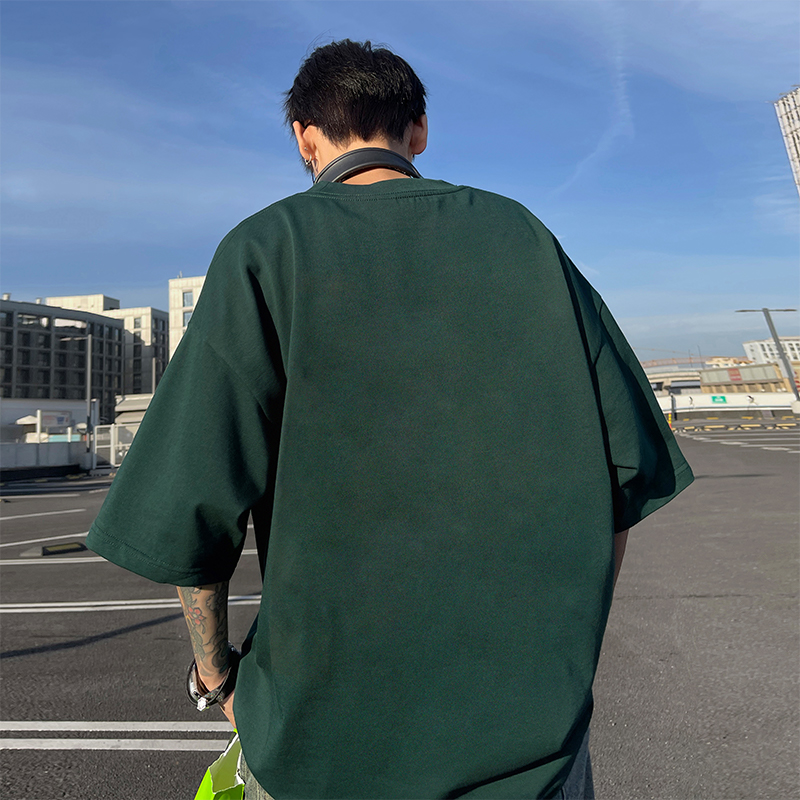 T2736夏季新款时尚舒适百搭美式短袖T恤-模特 M 墨绿色