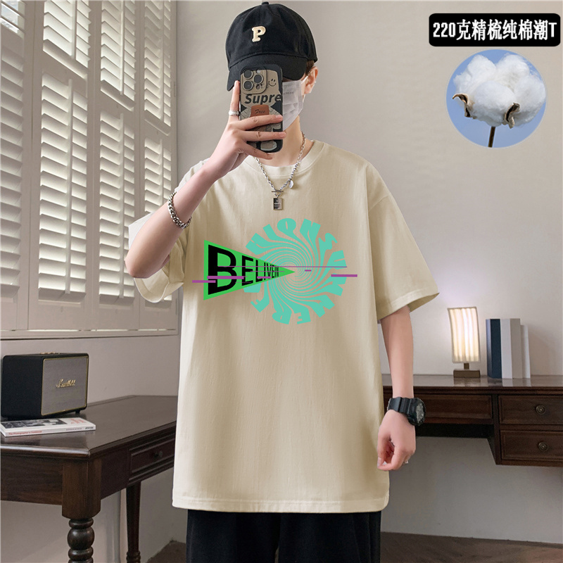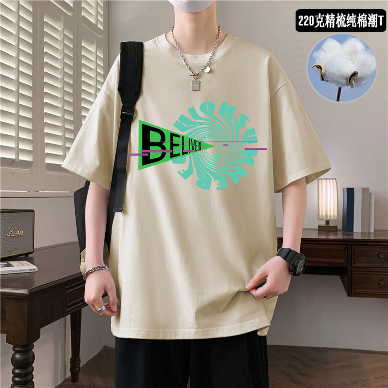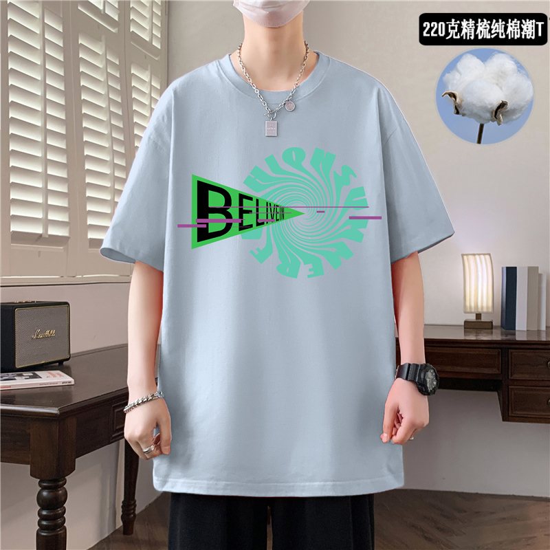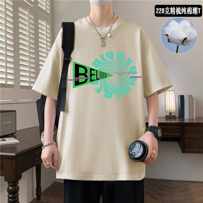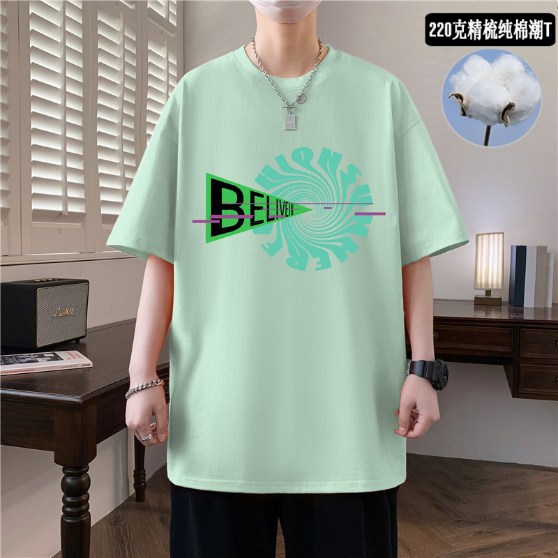 60048夏季高品质220克重磅精梳棉宽松落肩款纯棉T恤【爆款B】-平铺图