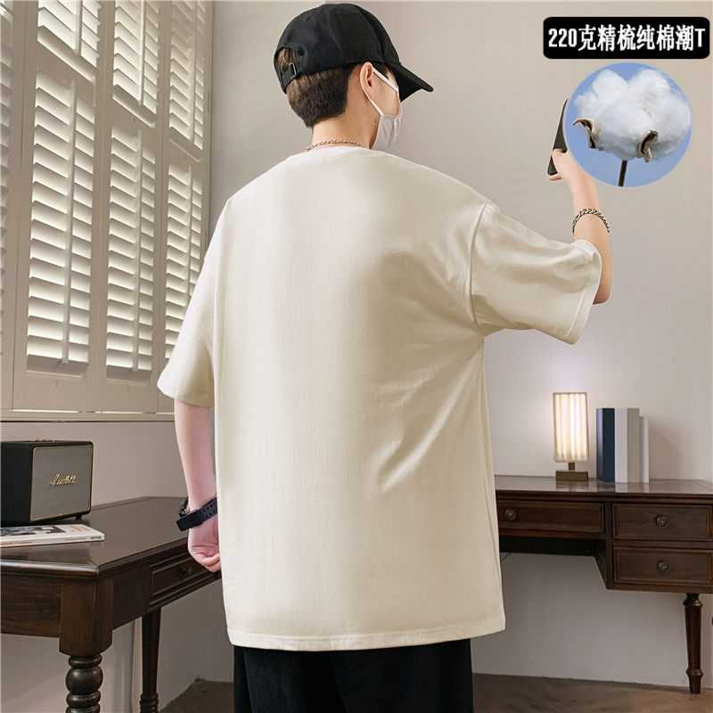 60050夏季高品质220克重磅精梳棉宽松落肩款纯棉T恤【爆款M】-平铺图