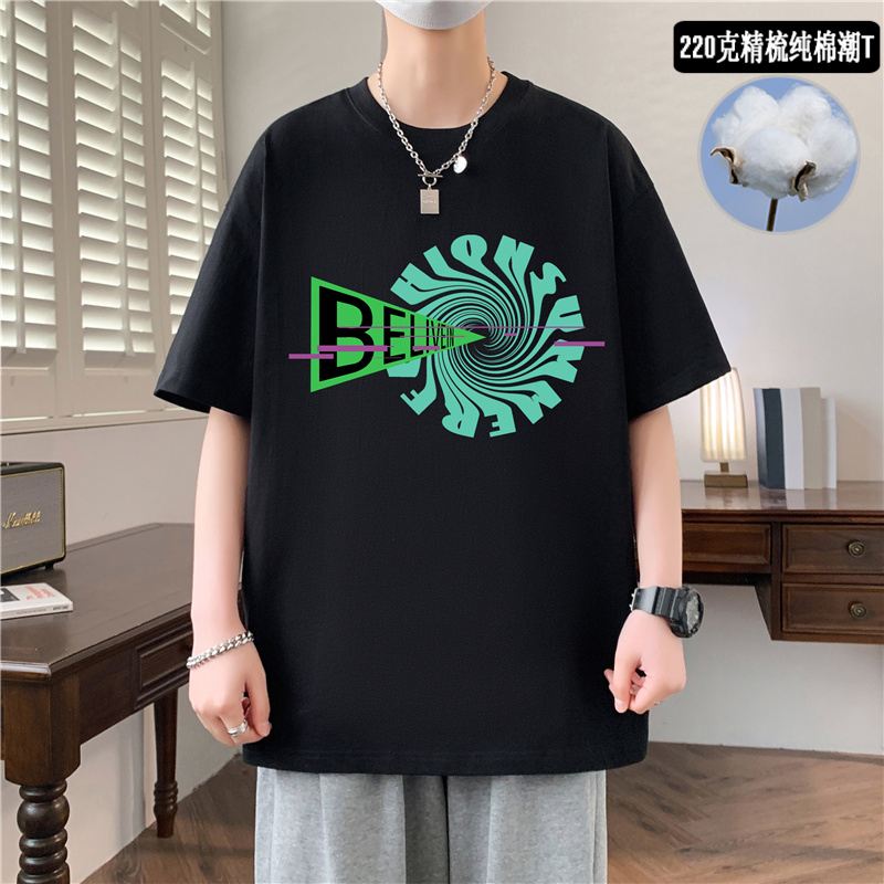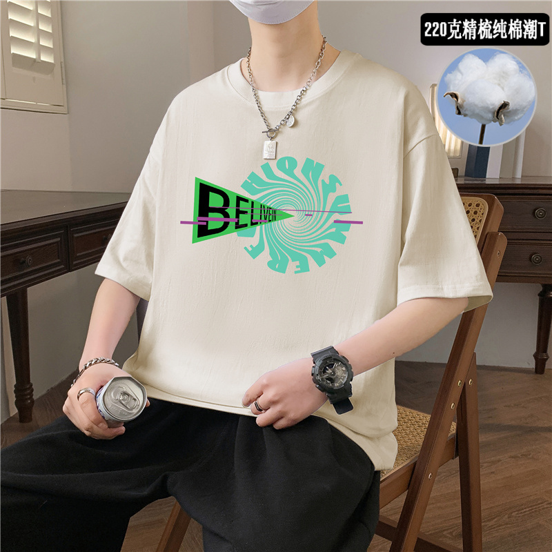 60053夏季高品质220克重磅精梳棉宽松落肩款纯棉T恤【爆款月球】-平铺图